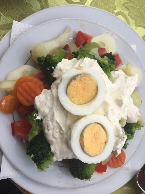 Cauliflower salad… not what we expected from the menu explanation. The veggies were frozen the defrosted before being doused in a thick dressing… meh.