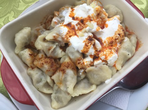 We loved these Klepe- Bosnian meat stuffed ravioli-like pasta with sour cream on top. Really, really good!