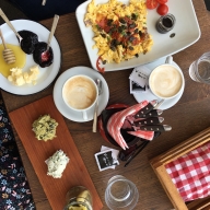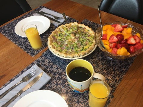 Perfect breakfast spread- quiche, fruit salad, coffee, and OJ. The fruit salad was super fresh and consisted of all my favorites- love ya mom!! The quiche was seriously amazing. I think the best quiche I've ever had. I could taste the love in every bite❤️ It had broccoli, onion, bacon, and super creamy smoked Gouda. Love. Pure love.