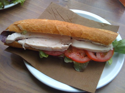 This was a simple sandwich for yet another quick lunch in Paris. The baguette was nice and chewy, but the rest of the sandwich was lacking. No sauce, no seasoning on the chicken, pretty bland overall.