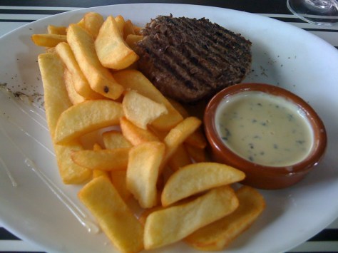 Steak hash with Roquefort sauce and frites, Bourges, France