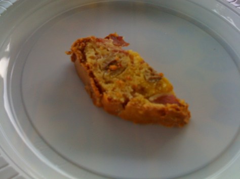 This was the appetizer Jessie baked for us at Charline’s house before dinner on the first night in Rodez. This was a strange but very tasty cake, filled with various vegetables and olives. It was a good precursor to the rest of the dinner.