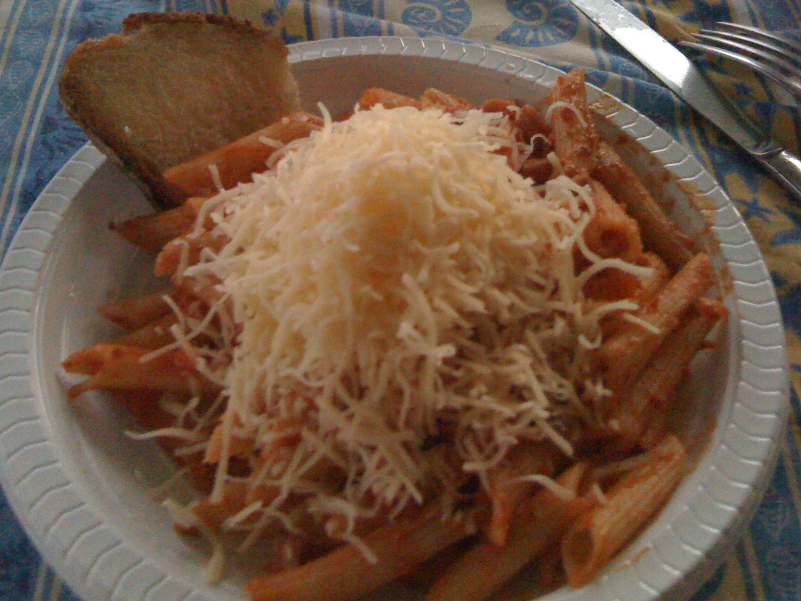 Charity made food appear out of nothing. The ingredients were scarce, but she managed to find some pasta, some cheese, and some pre-made bechemel sauce. It wasn’t the greatest meal ever, but it wasn’t terrible, (better than that Italian place in Paris for sure). Creamy and cheesy, just the way macaroni and cheese should be.