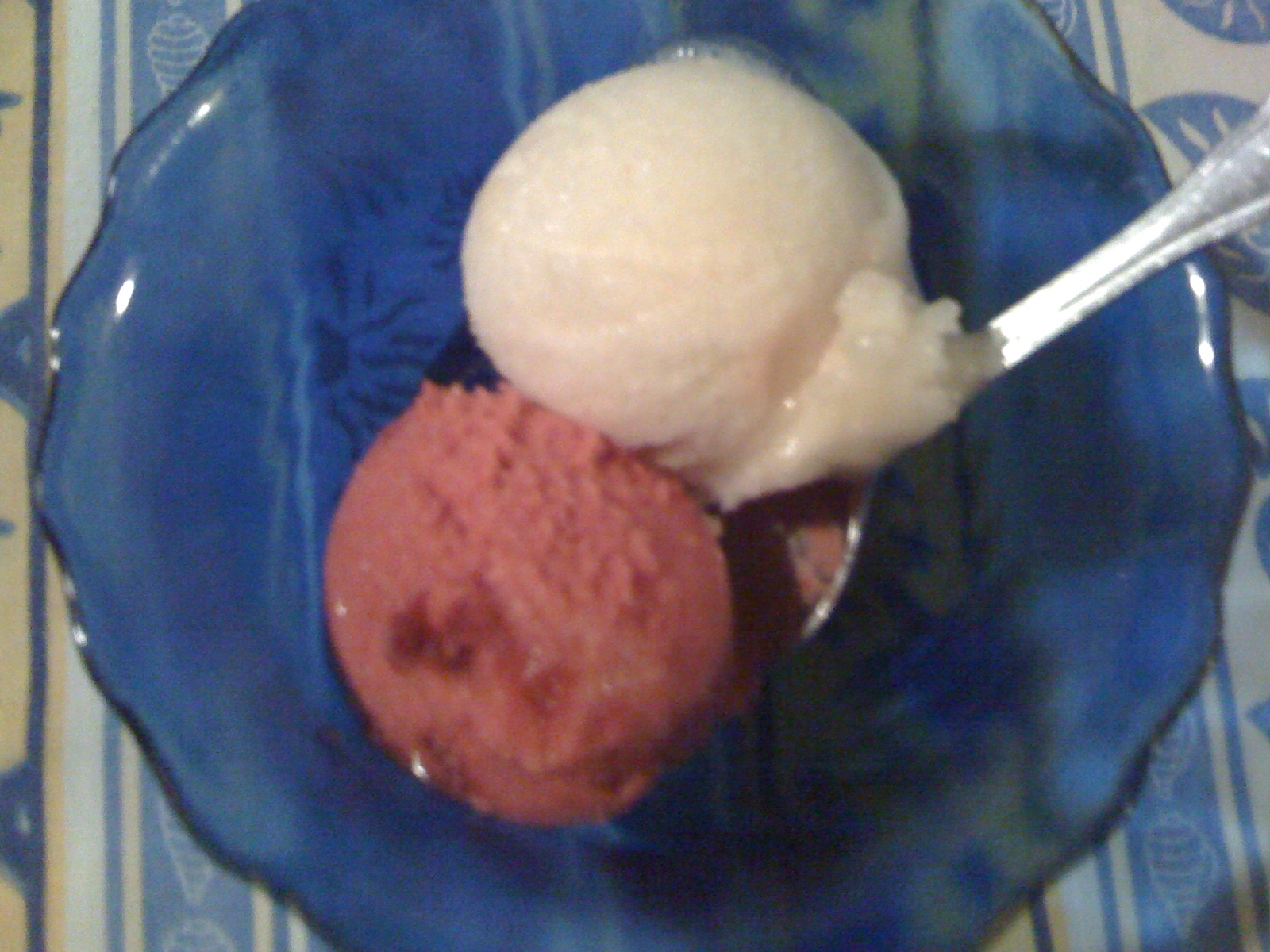 Nice and cold raspberry and lemon sorbet to finish out the meal. Delicious.