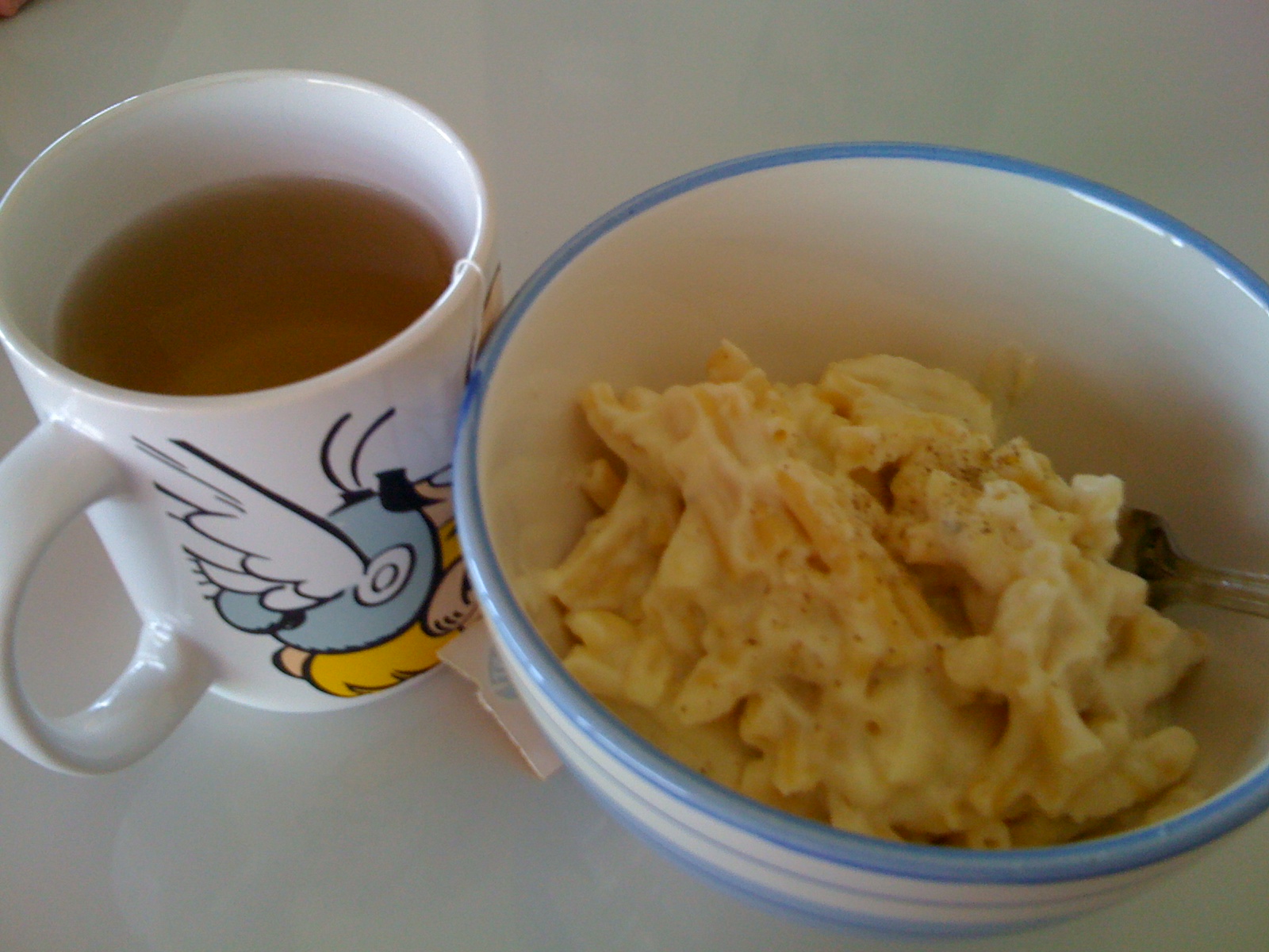 Macaroni and cheese with tea, Cyrille's father's apartment, Rodez, France