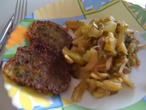 Ratatouille with little fried kale patties, Cyrille's father's apartment, Rodez, France