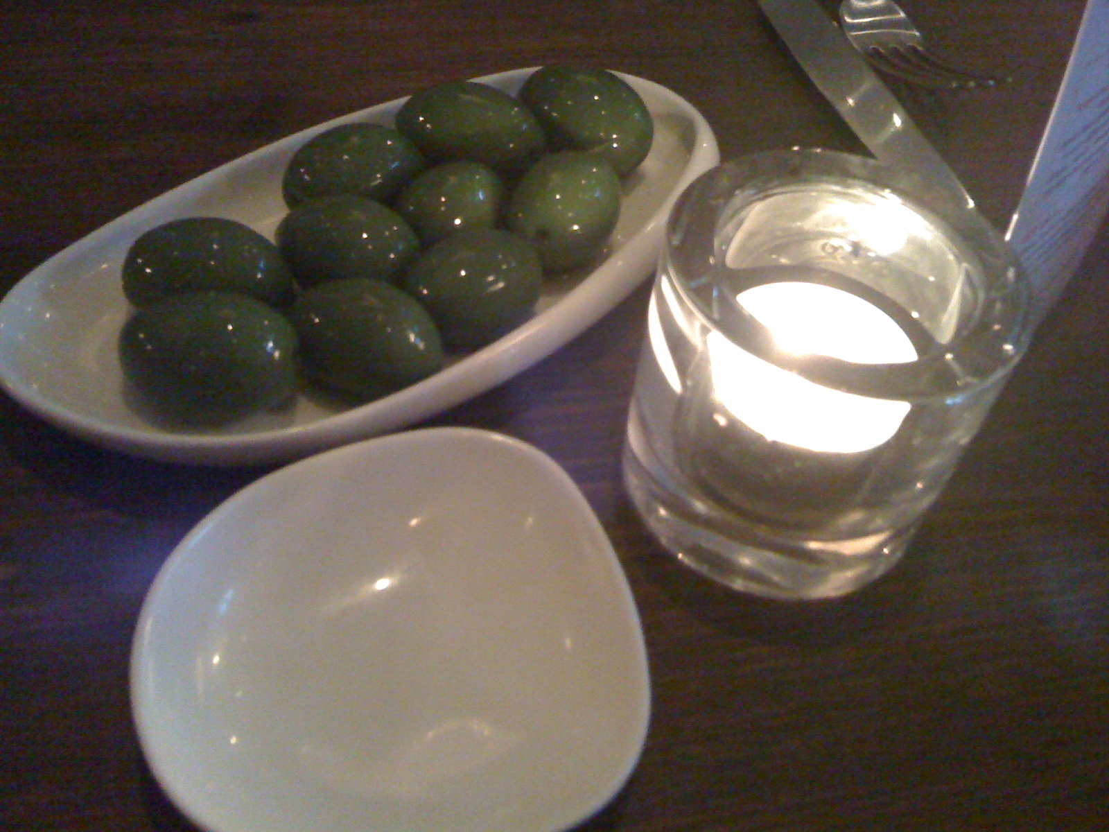 We’re experiencing some technical difficulties, so I’m going to talk about the olives and the bruschetta here 🙂 The olives were fresh, that’s right, not cured! We had never had fresh olives before so we were very surprised by their creamy texture – similar to an avocado, but firmer- and their sweet, mildly fruity flavor. They were a great way to start an awesome dinner!
