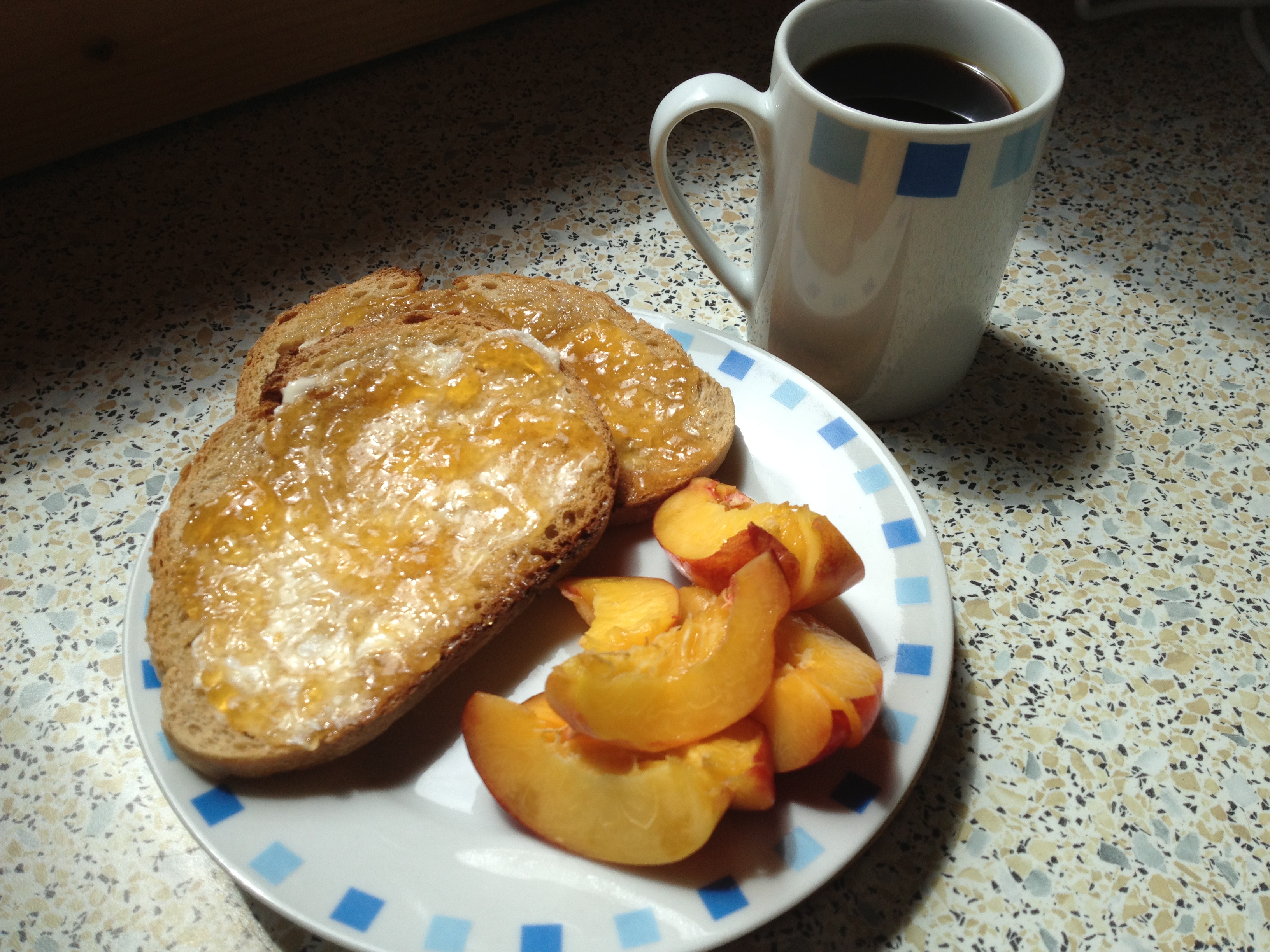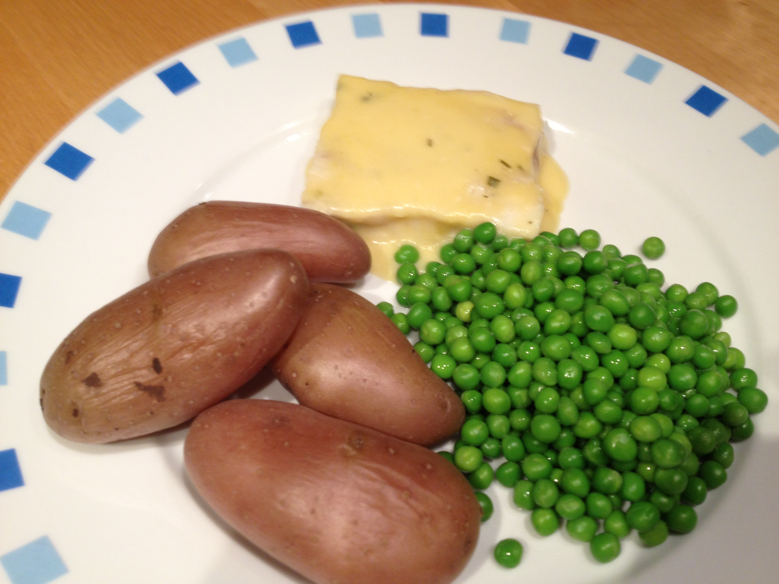 Keepin’ it simple. I boiled some potatoes and peas, then microwaved two “cod in lemon butter sauce” pouches for 11 minutes. Ding! Dinner’s done. Not bad. Not really good either. Although, I must comment on the potatoes. French potatoes are better. Smooth, creamy, sweet, with thin, tasty skins… if only our potatoes were this good.