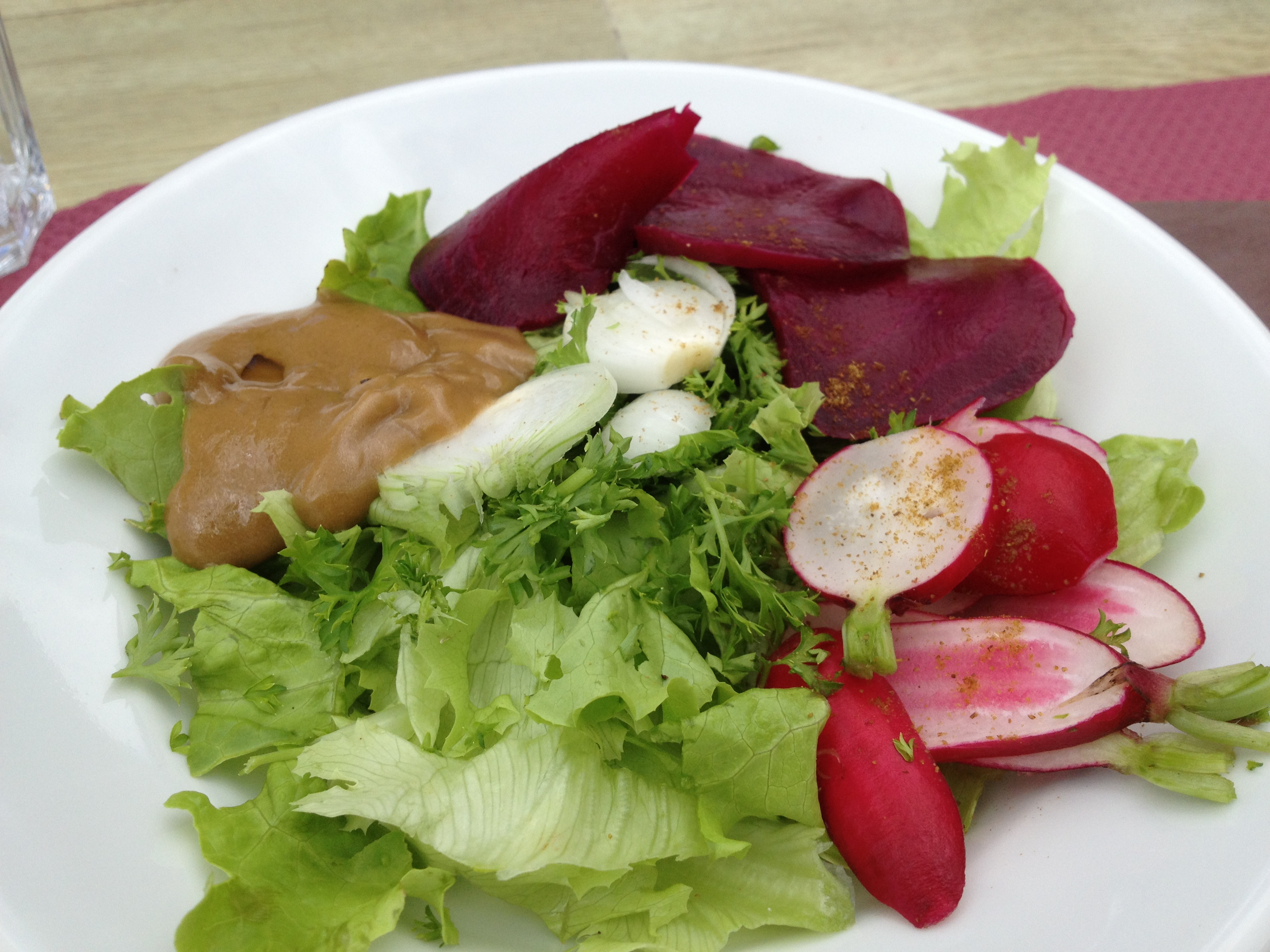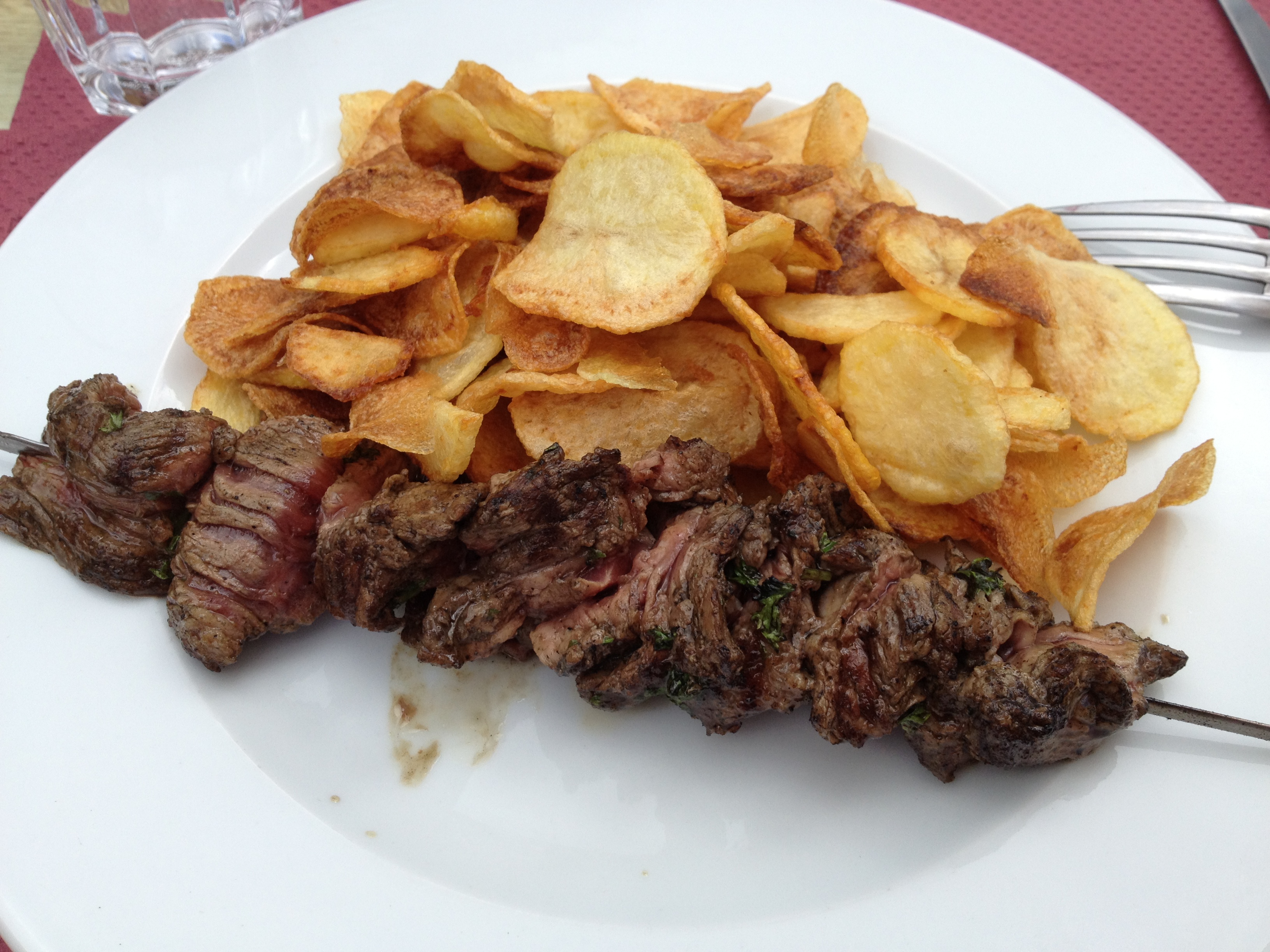 All was great, then I asked for mayonnaise and all became PERFECT! The waitress called inside through an open window to the chef. They didn’t have any, but he would make some fresh for me, “petite minute,ย s’il vous plaรฎt madame”. WHAT?!?!? It was SOOO good. I dipped every chip in it. Adam even put it on his steak:) We finished the meal with espresso.