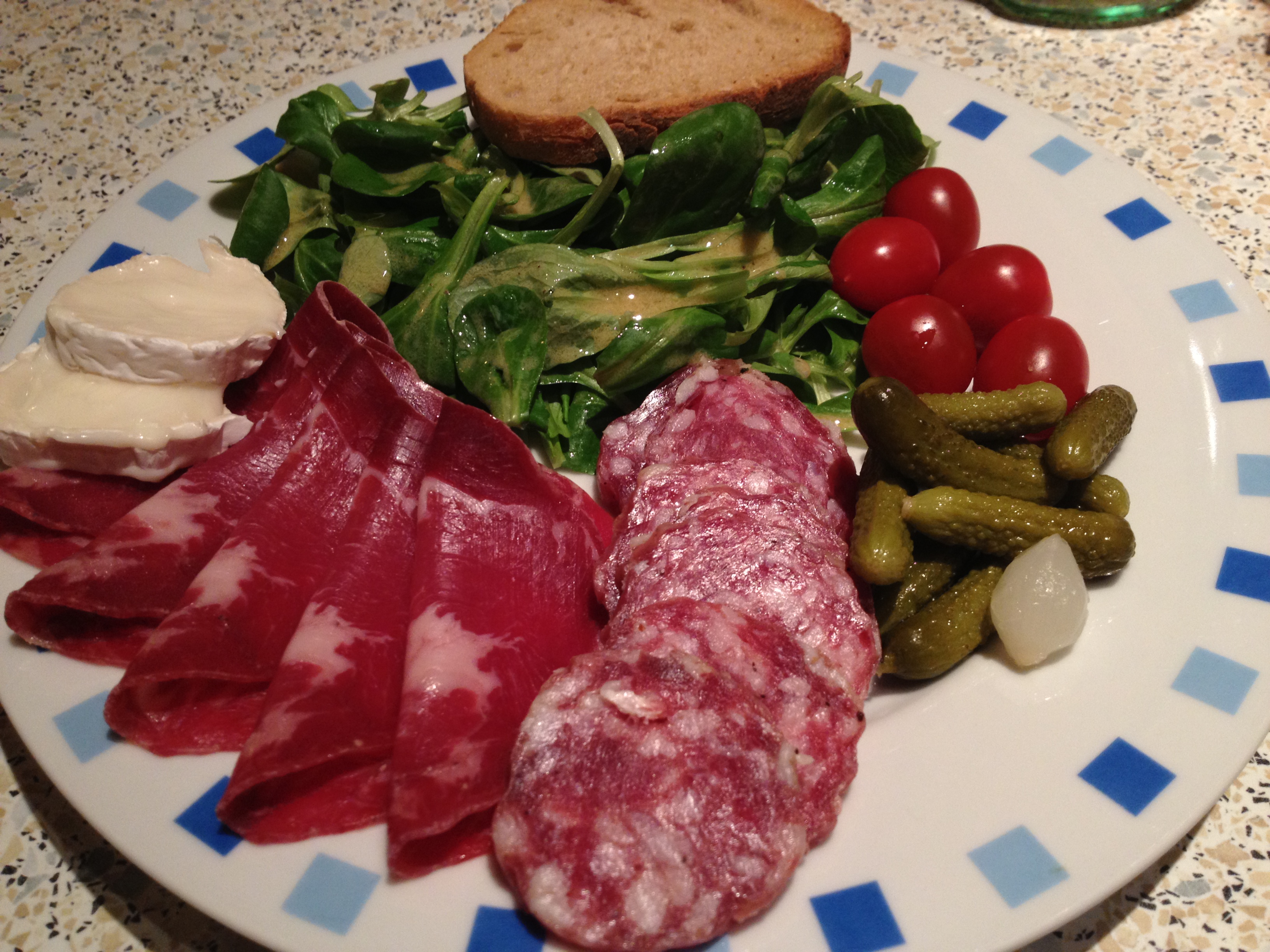 Not so much a regional speciallity, but definately a French specialty! Tonight I made very simple Charcuterie platters with Italian Capocolla, French saucisson, mache salad, chevrotin, cornichon, grape tomatoes, and sliced country bread. It was all very tasty and so easy! I am going to add this to my weeknight quick-meal round-up for sure!