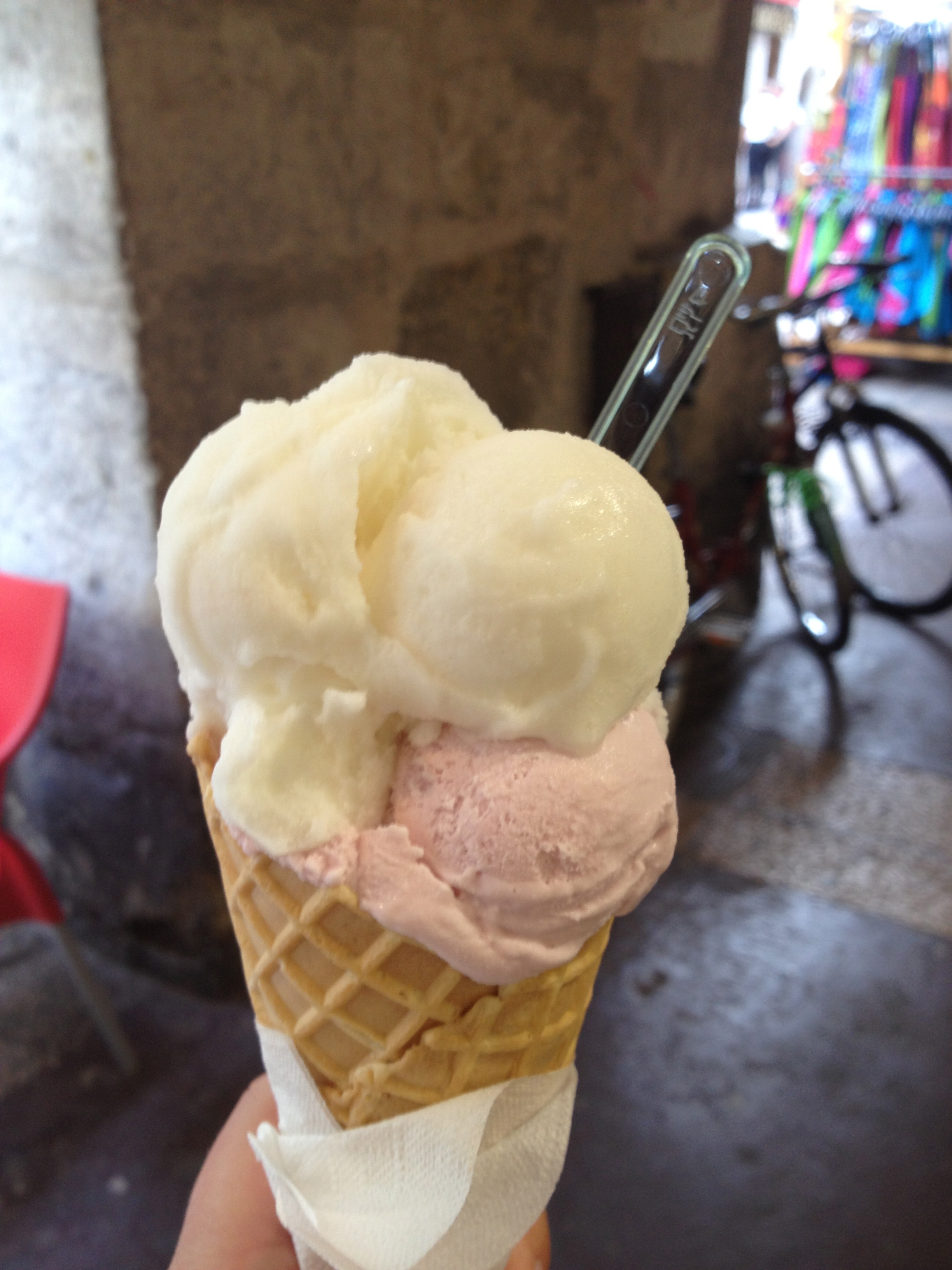 Uncategorized Snack # 15 July 10, 2013 Charity Prawitz 1 Comment It was a hot one in Annecy, so we needed some ice cream! I had two scoops – honey-lavender and lemon! I loved it! I love floral flavors and the lavender and lemon perfectly complemented each other! Adam had peach and pistachio- Delish! Share this: Click to share on Facebook (Opens in new window) Facebook Click to share on X (Opens in new window) X Like Loading... Related