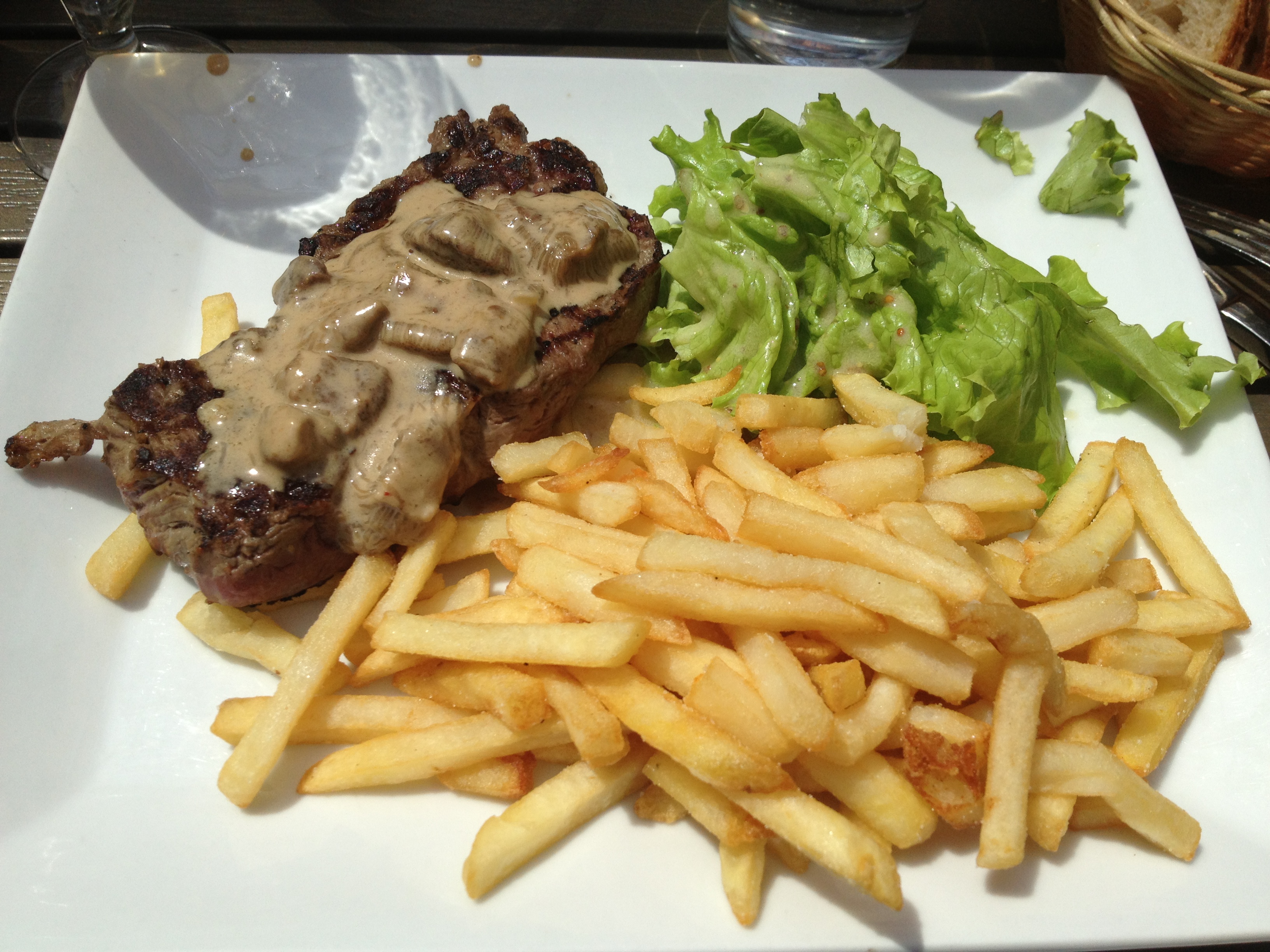 We dropped Gary and Aimee at the airport in Geneva then headed towards Lyon, our final French home. We had a lovely lunch! We started with the house-smoked salmon which was smooth and delicious! We then had the steak frites with a wild mushroom cream sauce – yum! We shared the chocolate mousse then finished with espresso. We’re going to miss these huge, delicious French meals!