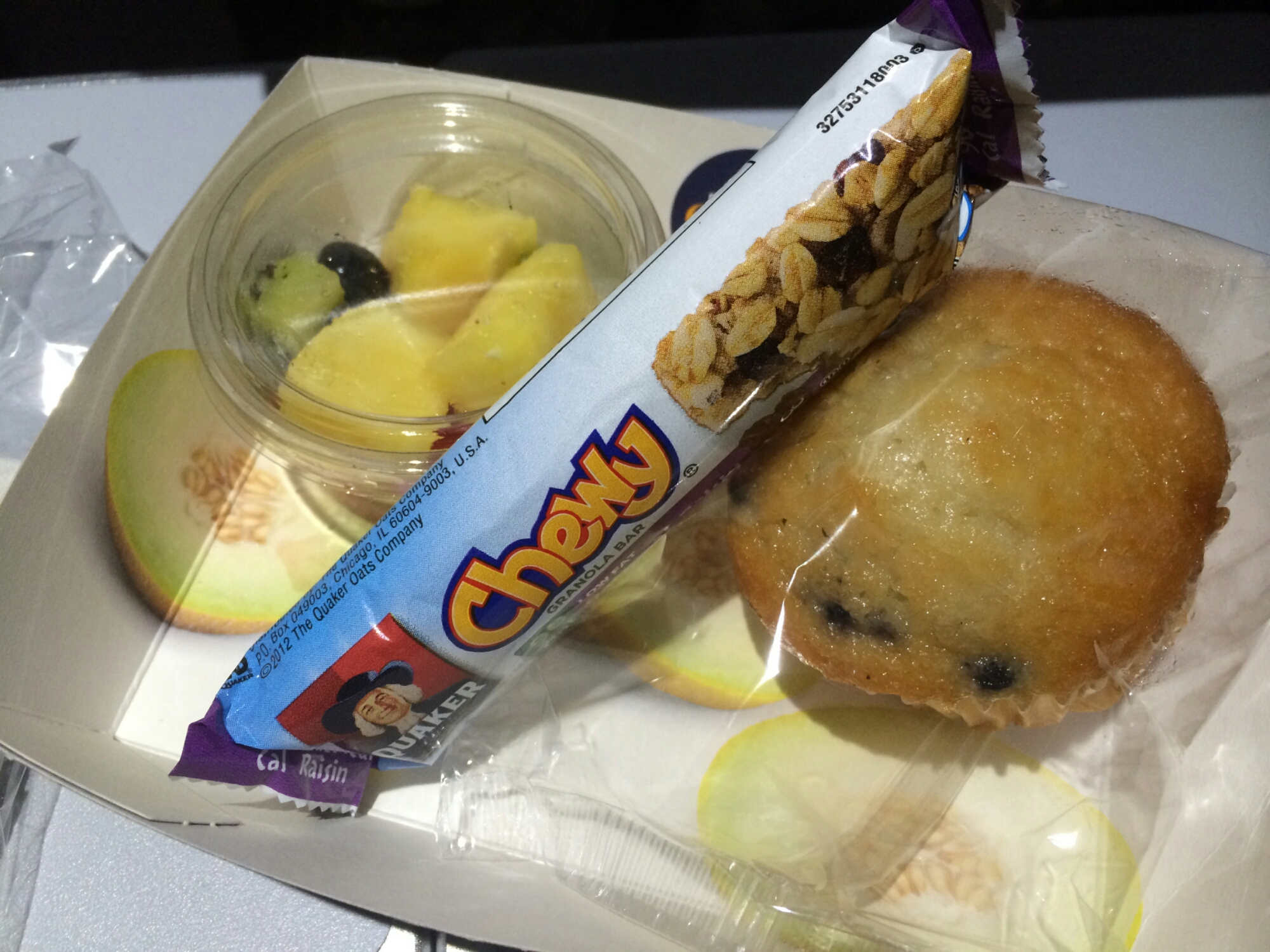 Food, Travel Light breakfast June 17, 2014 Charity Prawitz Leave a comment Just before landing we were served a light breakfast. The tiny fruit cup was yummy, but the rest was too processed for our liking. Share this: Click to share on Facebook (Opens in new window) Facebook Click to share on X (Opens in new window) X Like Loading... Related