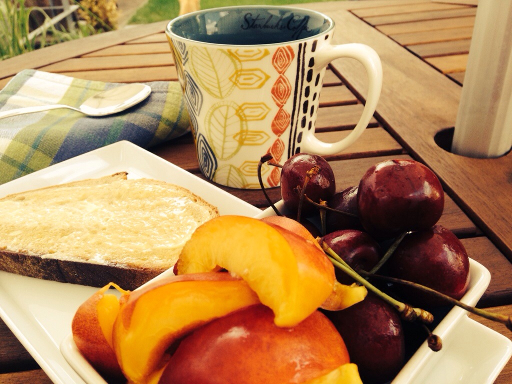 Food, Travel Breakfast June 21, 2014 Charity Prawitz 1 Comment After a long jog/walk (believe me, there was much more walk than jog;), I made a simple breakfast. Toasted buttermilk bread with butter and salt, cherries, nectarine, and coffee. Simple and delicious! Share this: Click to share on Facebook (Opens in new window) Facebook Click to share on X (Opens in new window) X Like Loading... Related