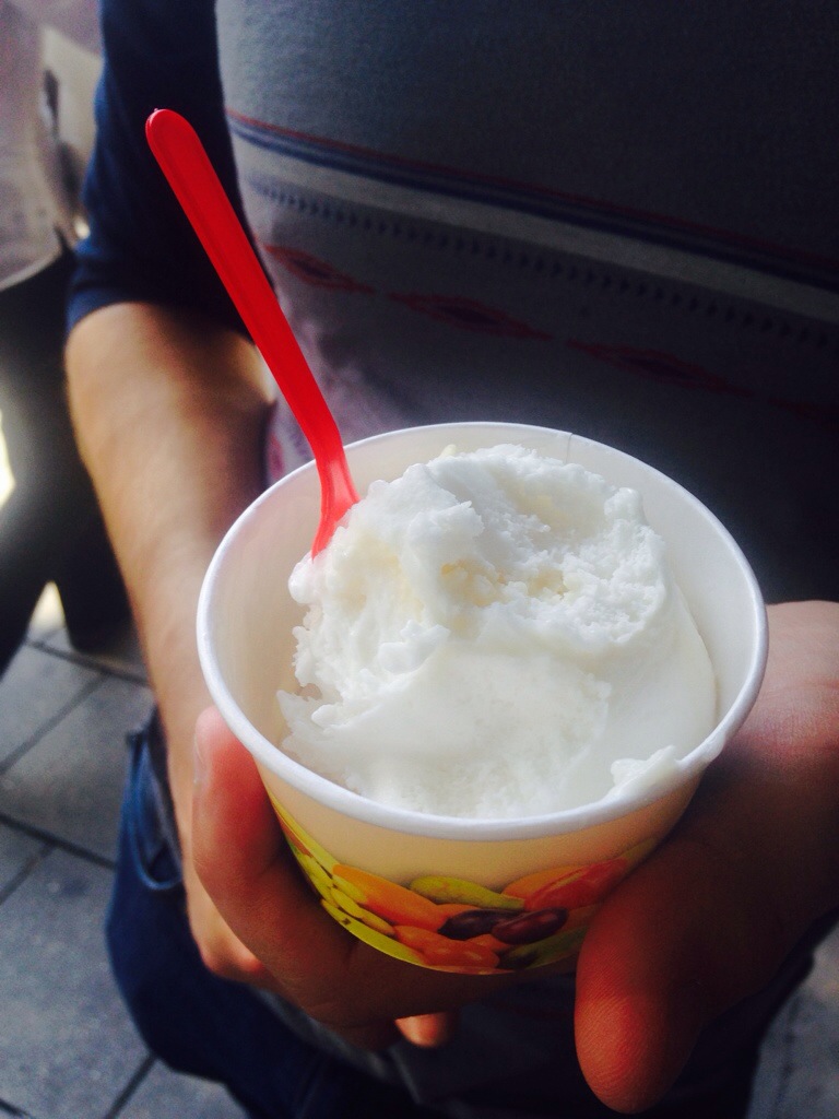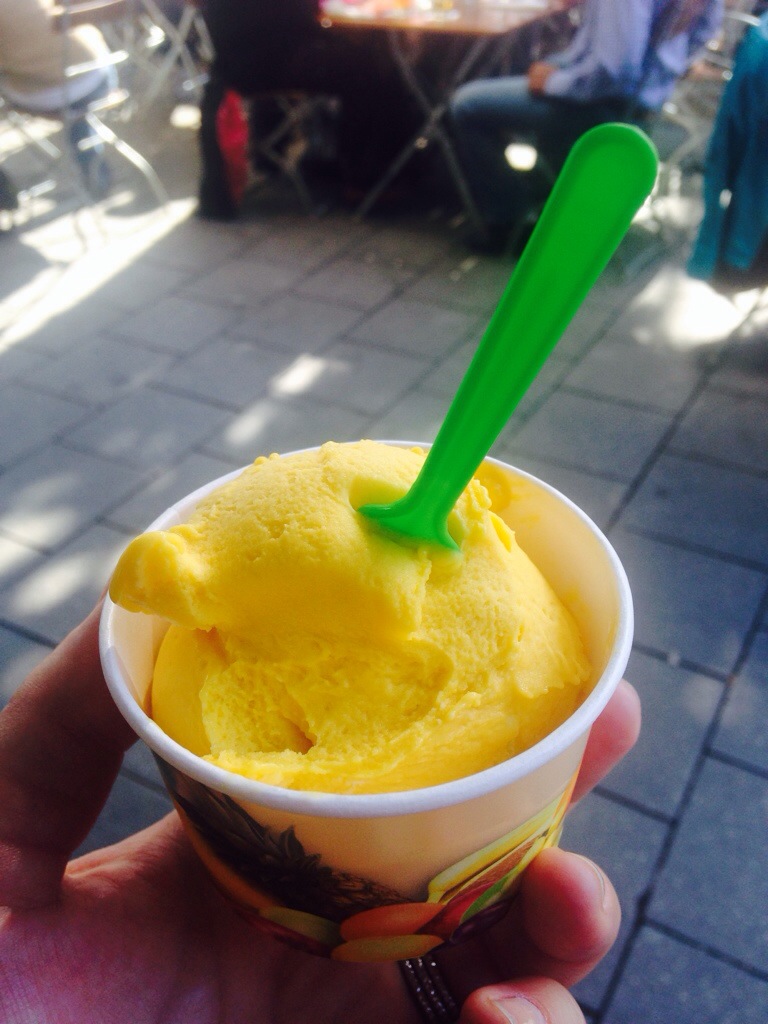 Uncategorized In need of refreshment June 24, 2014 Charity Prawitz 1 Comment It was hot today and we walked a lot (Adam estimates at least 11 miles). We needed some sweet, refreshing relief! We stopped by a street-side sorbet stand 🙂 I had mango and Adam had lemon- just what we needed to carry on a busy day of sightseeing! Share this: Click to share on Facebook (Opens in new window) Facebook Click to share on X (Opens in new window) X Like Loading... Related