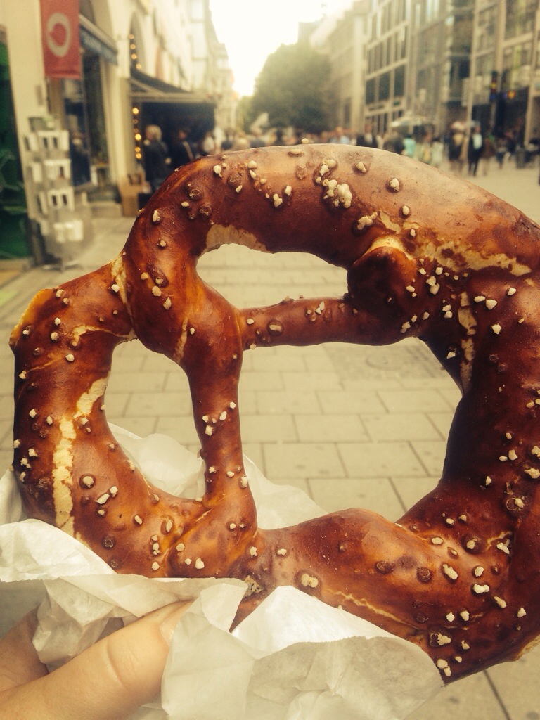 1. What a great picture of the pretzel with the town in the background. Awesome architecture!