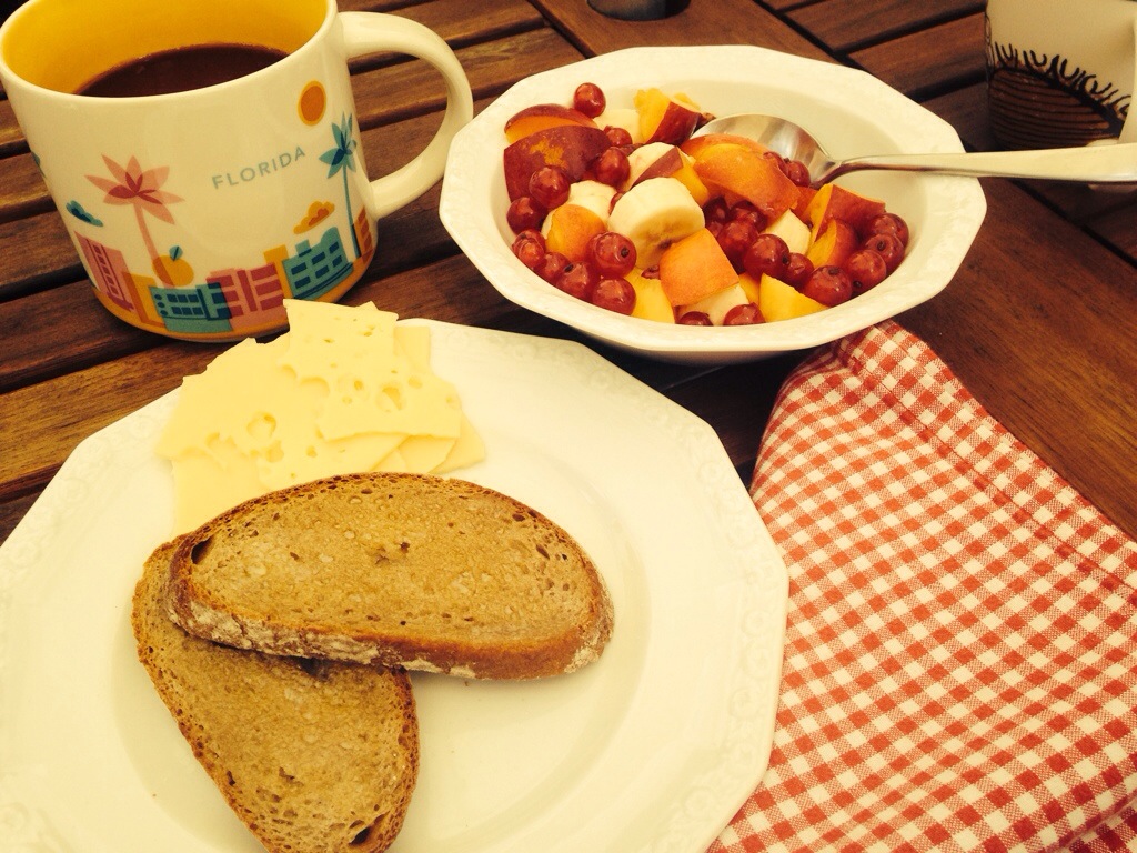 Food, Travel Breakfast on the patio June 26, 2014 Charity Prawitz Leave a comment We had lovely breakfast on the patio! Coffee, buttered toast, cheese, and a fruit salad with bananas, nectarines, and red currents. Yum! Share this: Click to share on Facebook (Opens in new window) Facebook Click to share on X (Opens in new window) X Like Loading... Related