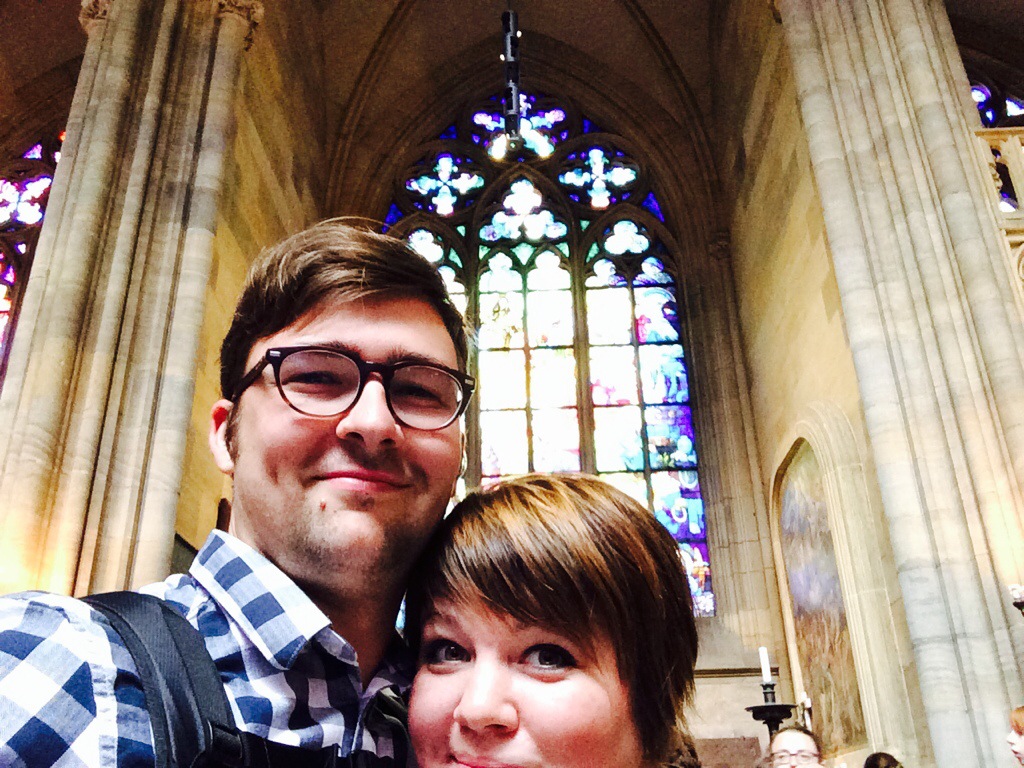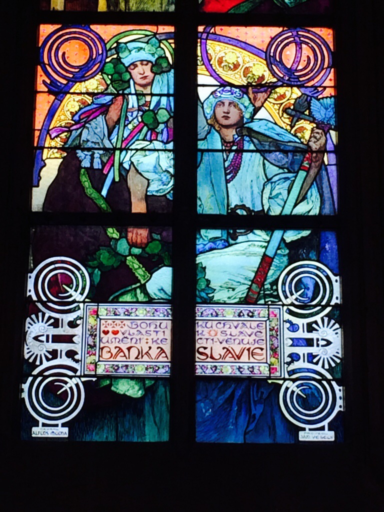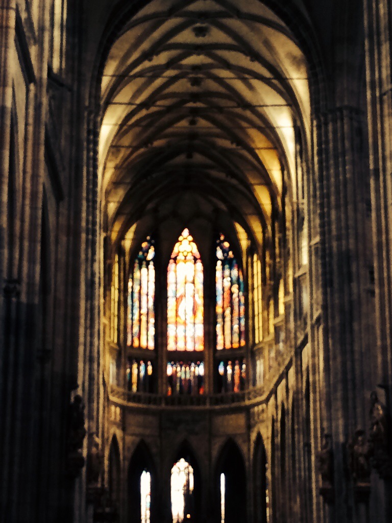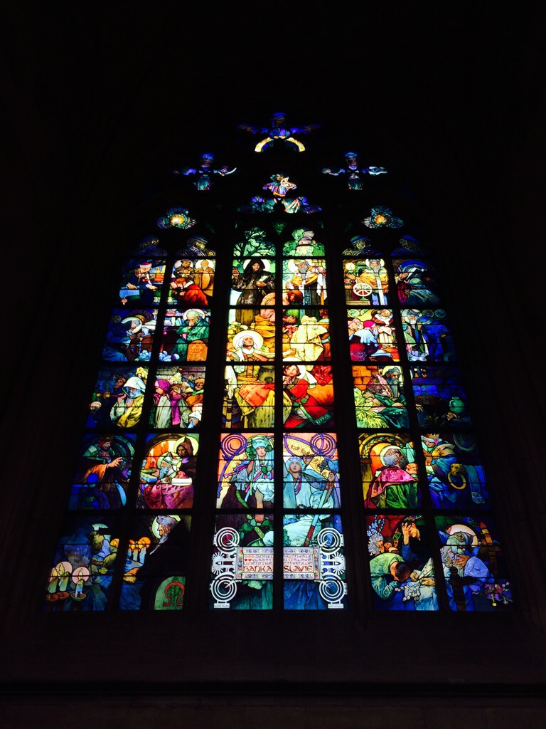 After the Jewish quarter, we took a tram up to St. Vitus, because Mucha designed one of the stained glass windows. It was truly amazing! The most beautiful stained glass we’ve ever seen. I was moved to tears. Wish the pictures revealed its true light and color.