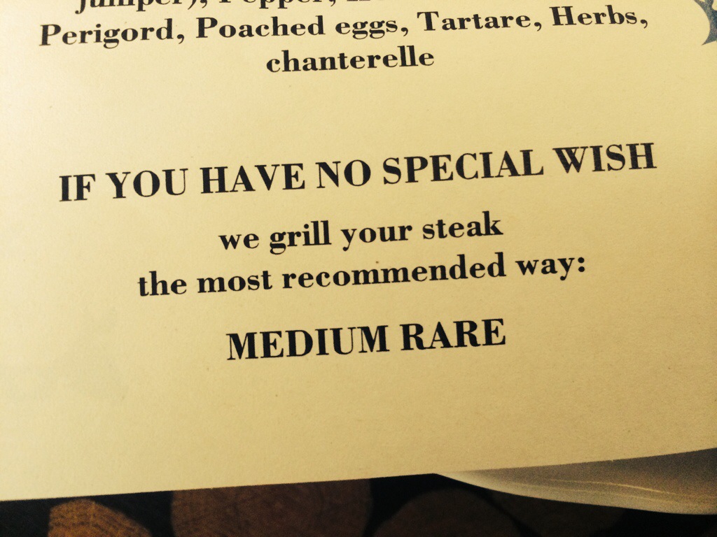 We were worried the third course would push us over the edge. We were so full and so happy already. The kind waitress asked if we would like her to wait to bring the steak course, perhaps have some brandy? She read our minds. “Yes, please”!