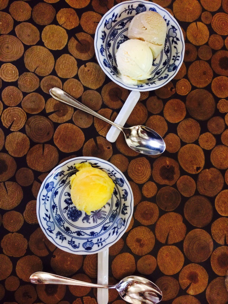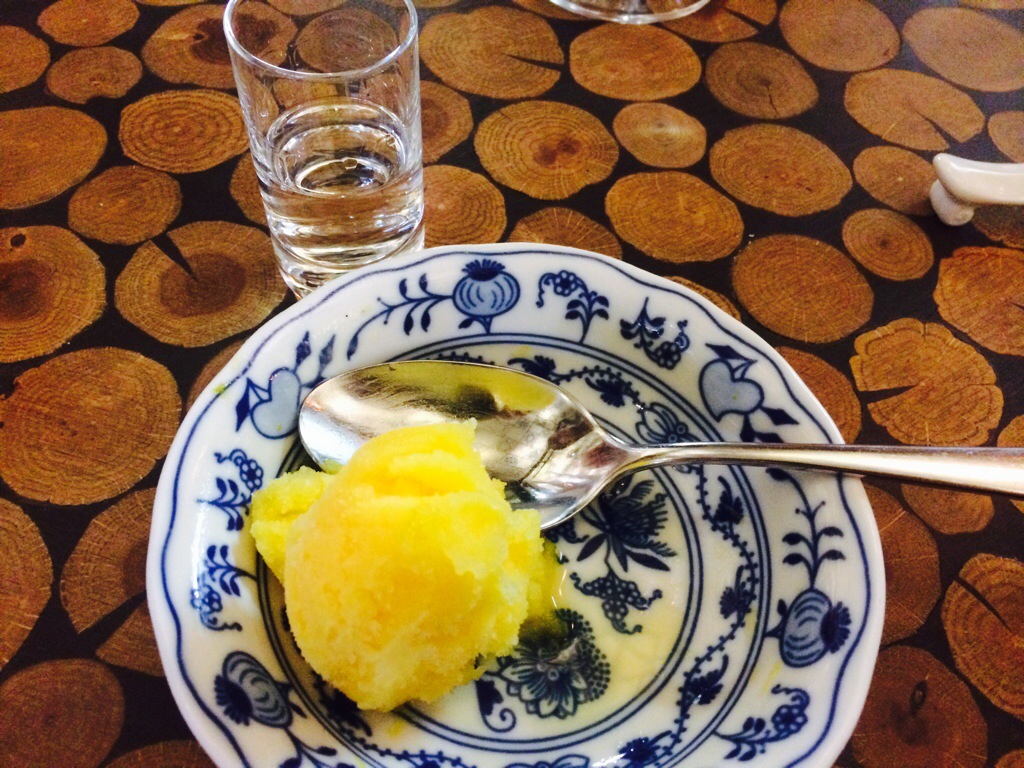 We were so full, but the food was way too good to miss dessert… We just had to… I had a scoop of the fresh house-made orange sorbet and the apricot brandy. Adam had scoops of house-made vanilla and dark beer ice cream. Both were excellent. The beer ice cream was unique and delicious.