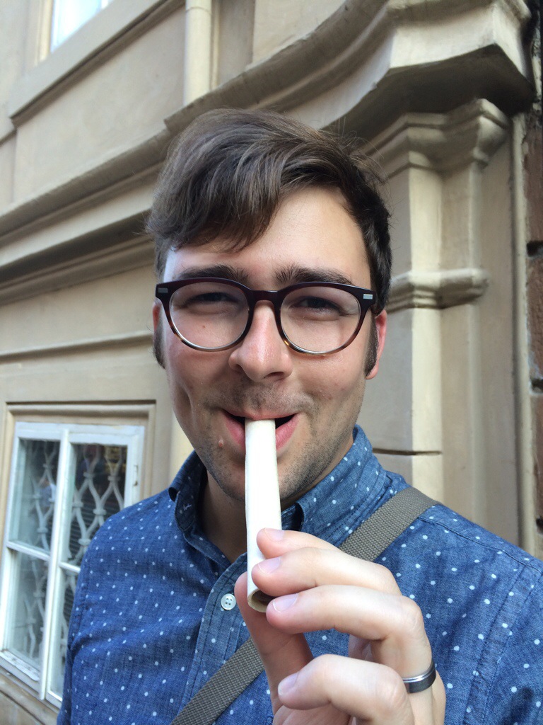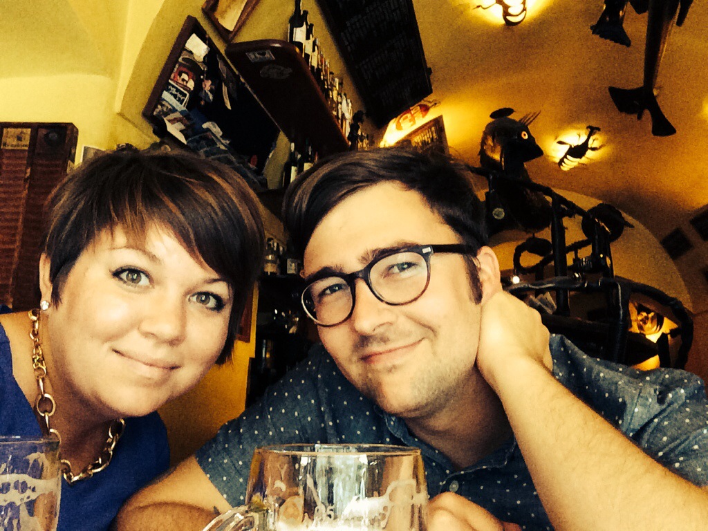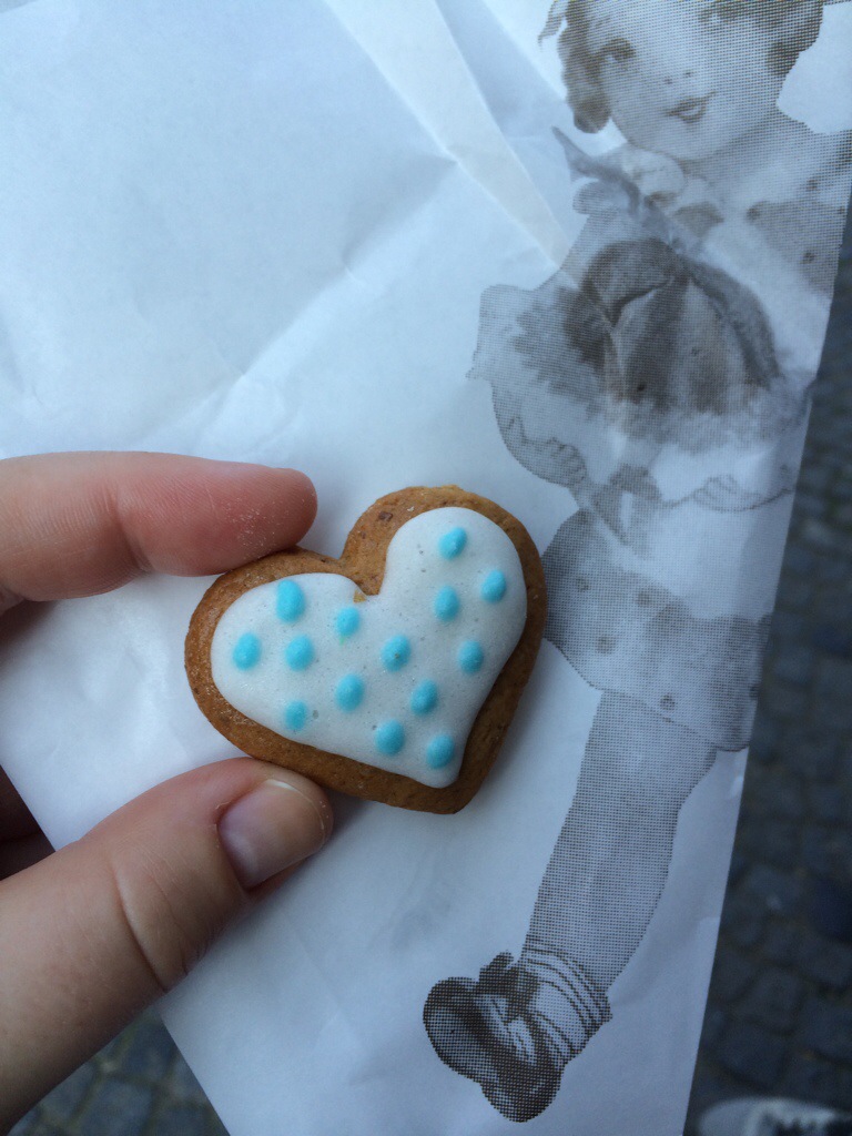 We walked down the hill to a bar we’ve been wanting to try. On the way, we picked up a couple local treats we didn’t want to miss. I had a mini gingerbread cookie and Adam had a treat he described as “eating candy with paper wrapper still on”. The gingerbread was spicy and a touch crisp… Should’ve gotten the full sized cookie 🙂 Adam’s was a tube of layered crispy cookie with chocolate hazelnut cake icing inside. It was weird.