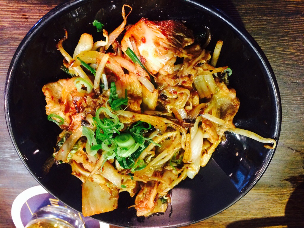 I had napa cabbage onion and bean sprout stir fry in a salty, spicy sauce. Wow! It was really delicious- just the veggie fix I’ve been craving! All the veggies were cooked perfectly crisp-tender and the sauce was so full of umami goodness. So satisfying!