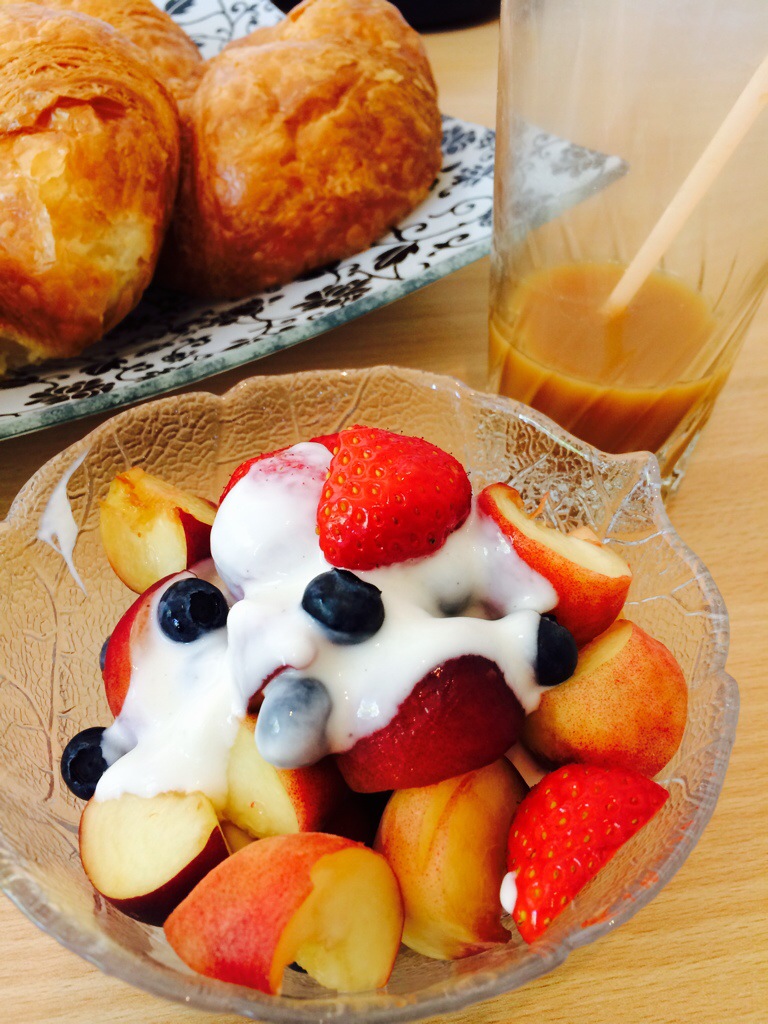 Food, Travel Breakfast and friends! July 19, 2014 Charity Prawitz Leave a comment Dave and Dana are here!!! We’re so happy their joining us 🙂 We had fresh berries and peaches with vanilla yogurt and croissants. I made cold-brew coffee and served it iced with basil simple syrup and cream- mmm! Share this: Click to share on Facebook (Opens in new window) Facebook Click to share on X (Opens in new window) X Like Loading... Related