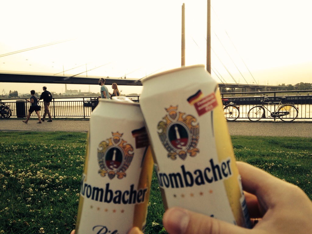 We walked to the Rhein, found a cozy spot, and had an evening picnic! There were tons of people out enjoying the great weather- awesome people watching 🙂 We had cold beers, pretzels, bell peppers, cheese, and strawberry wafer cookies. Sorry I forgot a pic of the food:/