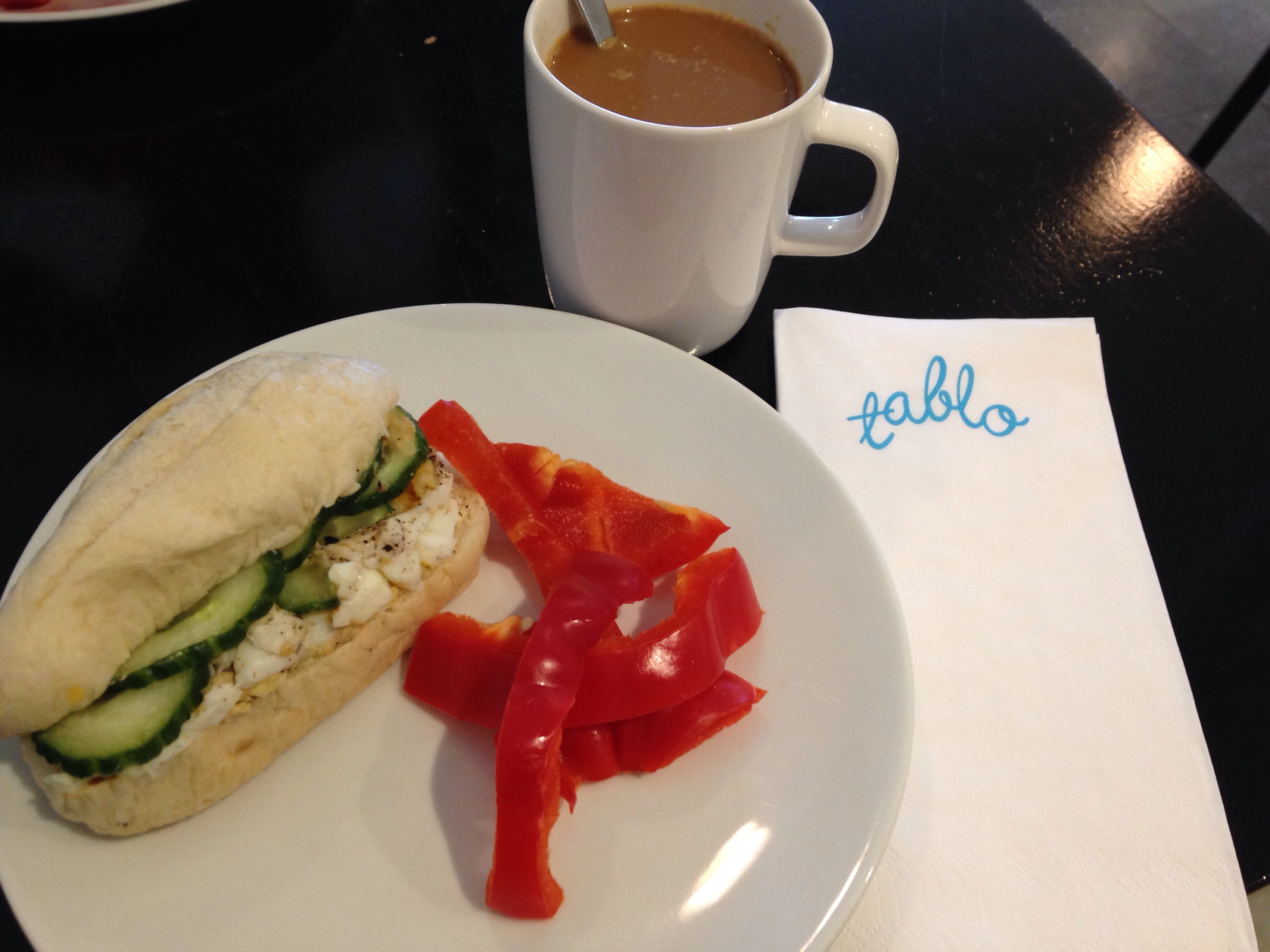 For lunch, we had egg, cucumber, butter, and mustard sandwiches with red bell pepper- edible, not great, but free!!!
