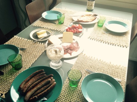 Our friendly exchange partners, Yvonne and Björn picked us up at the Vaasa train station. After a quick drive, we arrived at their comfortable and stylish home. They showed us around a bit then served the most amazing Finnish meal. We had cheese, tomatoes grown in Yvonne’s home village, smoked reindeer, moose sausage, smoked white fish, smoked fish spread, butter, fresh rye bread, strawberries, and vanilla-raspberry crumbles. All served with champagne! Everything was delicious, fresh, local, and served with love.
