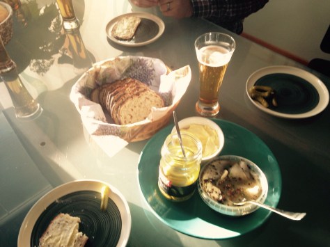 We made it home! Jill and Cody we’re glad to be home. We had some aperitifs- Finnish beer, pickled herring, cornichons, bread, and butter.