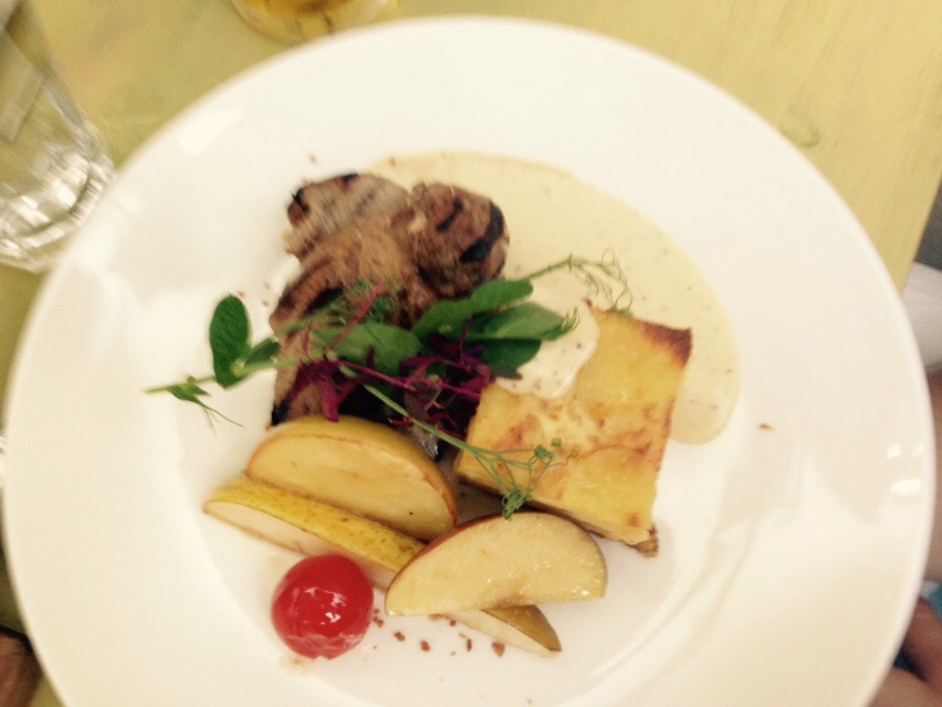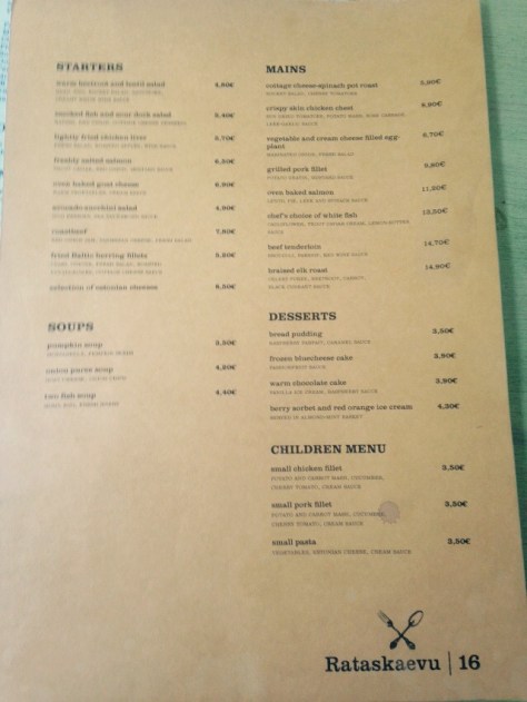 For mains, Adam had the grilled pork with potatoes and I had the “chicken chest” with tomato-potatoes have and romanesco. Both were great! We love that fine food and drink are affordable in Estonia!!!