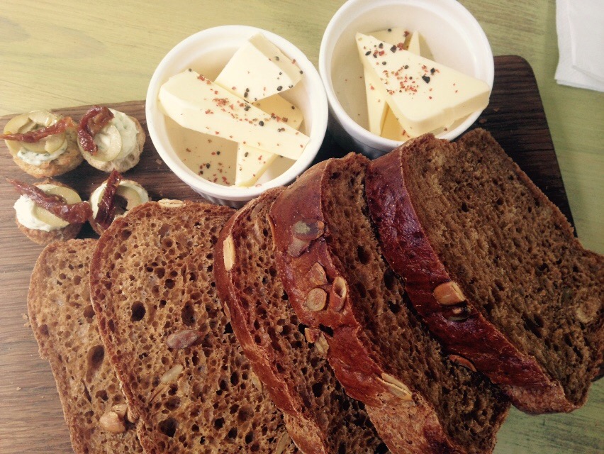 Jill and I shared a bottle of Italian prosecco- cold, refreshing, and bubbly.   Then, the waiter brought us amazing, homemade pumpkin seed bread. Wow!!!