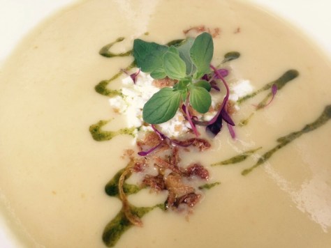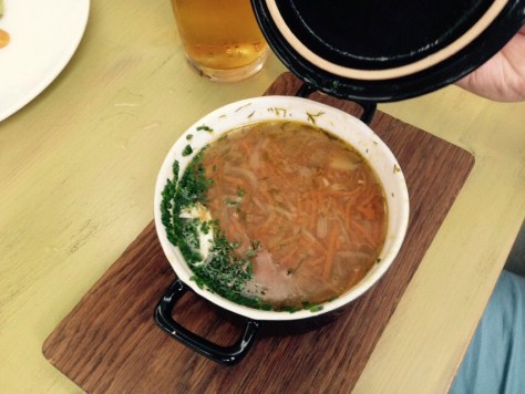 Adam and I each started with soup. I had creamy onion and Adam had “two fish soup”. Both were served perfectly hot and made with quality ingredients.
