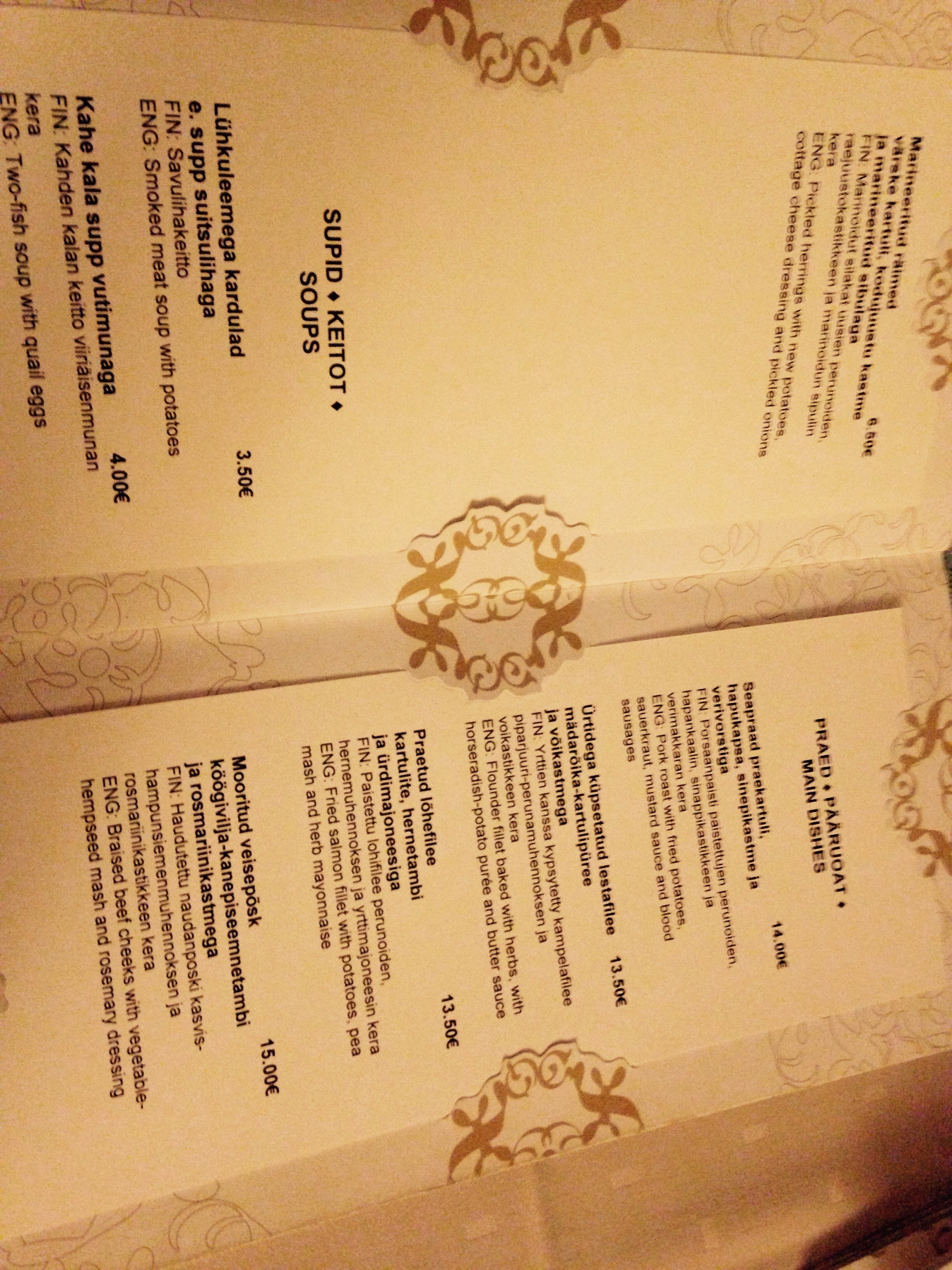 Adam and I went to a traditional Estonian restaurant called Grandma’s Kitchen. It was warm and welcoming and the food was mostly very good.