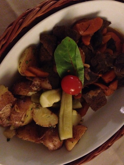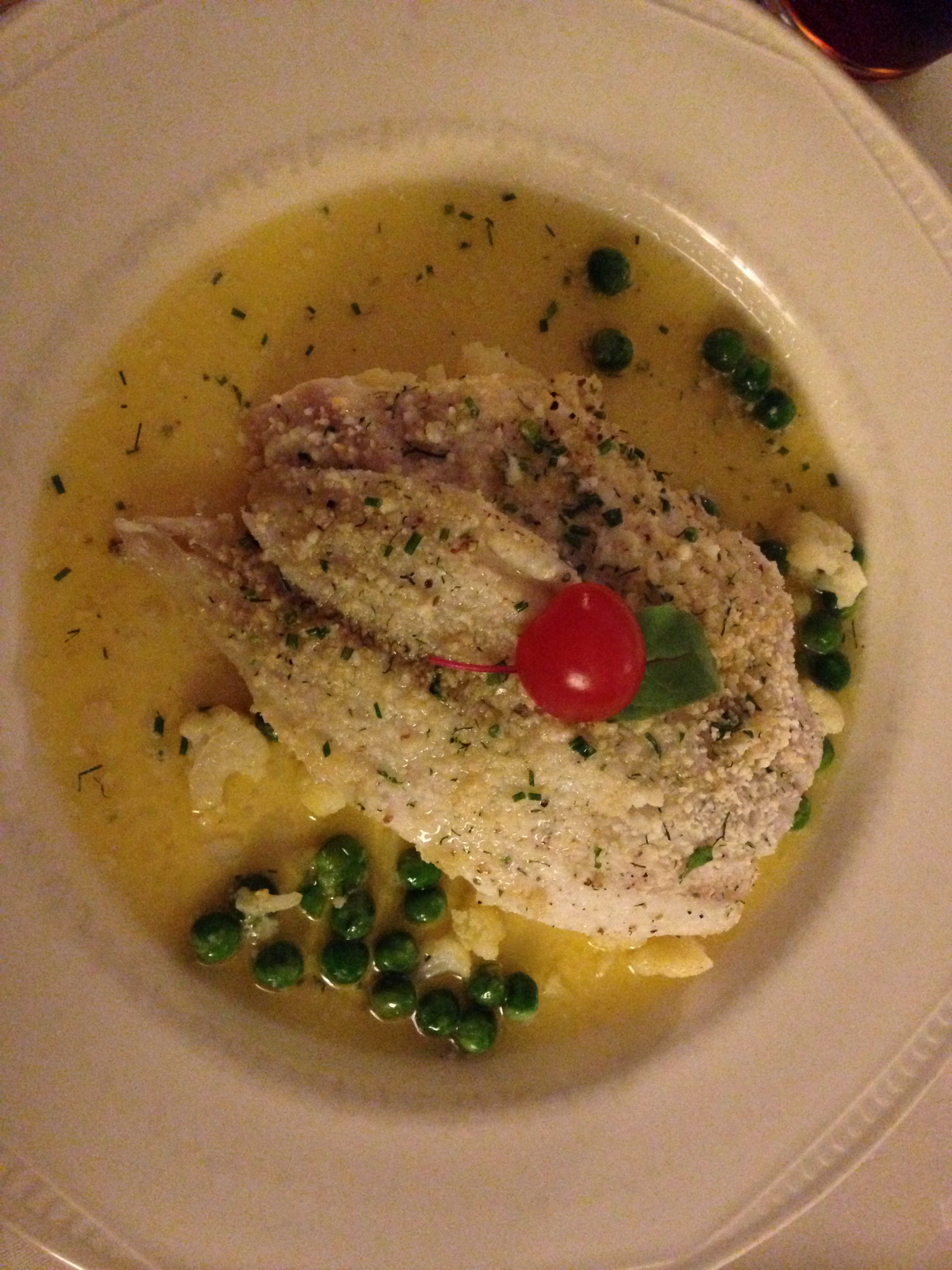 My main was really good- herb baked flounder with creamy mashed potatoes, peas, and cauliflower all surrounded by a luxurious moat of melted butter!!! It was perfectly cooked and seasoned. I loved it. Unfortunately, Adam’s wasn’t as good. He had Grandma’s elk stew with vegetables. It was a surprisingly small, sauceless portion of somewhat dry, roasted things- carrot, mushroom, potato, and elk. Where was the stew?