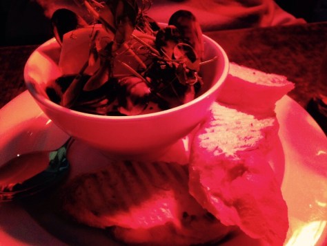 When the show ended, we went to dinner at Clayhill’s. Jill and Cody went there and highly recommended the mussels. Sorry the pictures are terrible, low temps tonight so they had their heat lamps on. Everything glowed red… Even our Caesar salad and creamy mussels. The food was good; however, it was so chilly out, our mussels arrived warm and were cold by the time we really dug in… A real shame😒