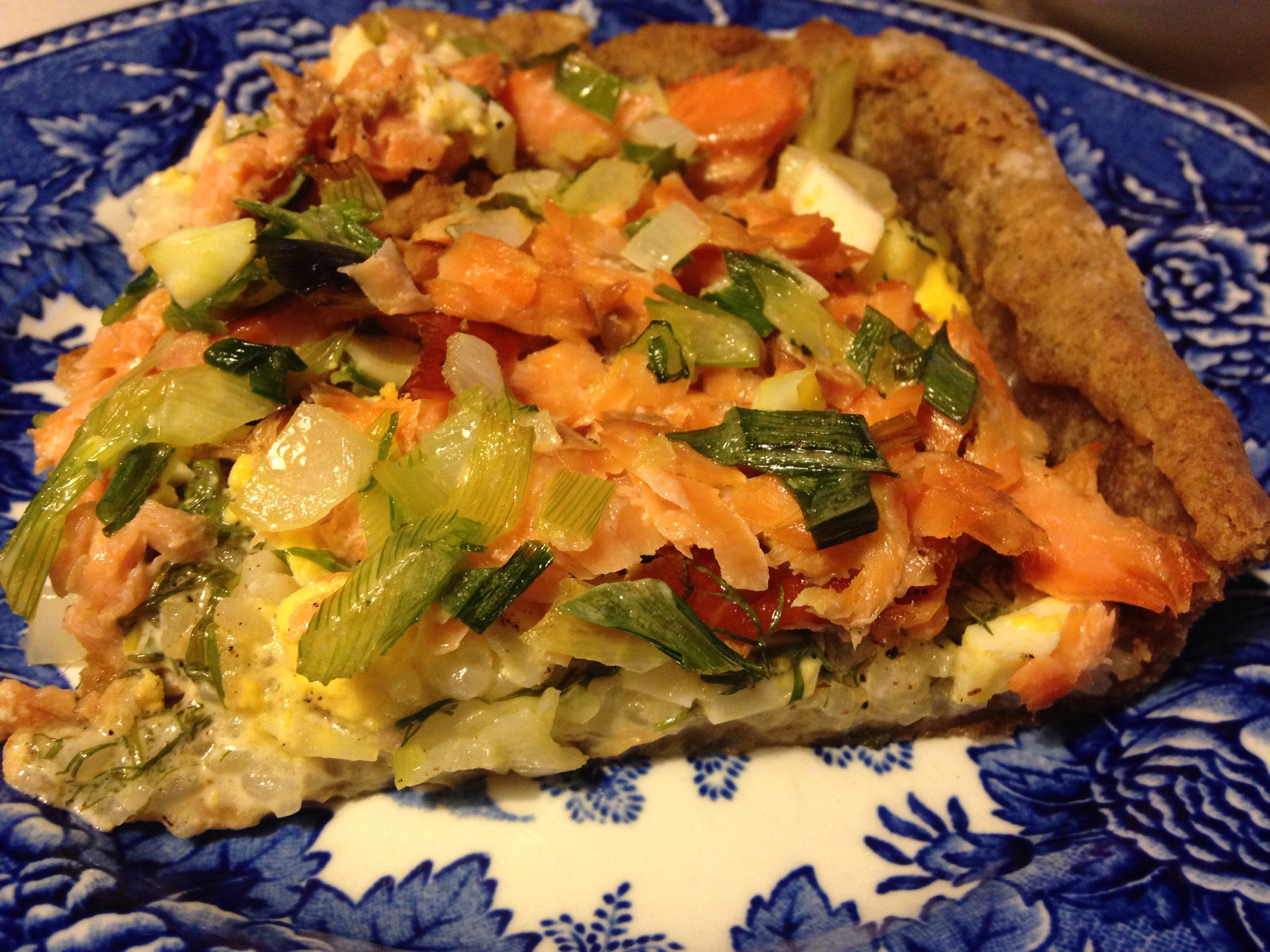The Lohipiirakka, smoked salmon pie, didn’t taste bad. It just wasn’t very good. The texture was all off. Flavorwise, it was on point- hard boiled eggs, rice, lots of fresh dill, butter sautéed spring onions, smoked Finnish salmon, rye pie crust. Perhaps I should’ve prebaked the crust a bit to ensure a crisp, crumbly, flakeyness… does rye pastry get flaky, crumbly? I’ve never made a pie dough with anything but good ol’ American all purpose. Hmmm… 😕