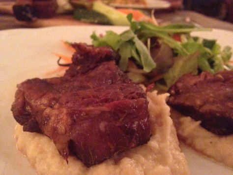 Adam had the beef shanks with celeriac purée and rainbow salad. His was better than mine, but still not good. Again, severely under salted. Fortunately, it was all SUPER cheap! €21.00!!!