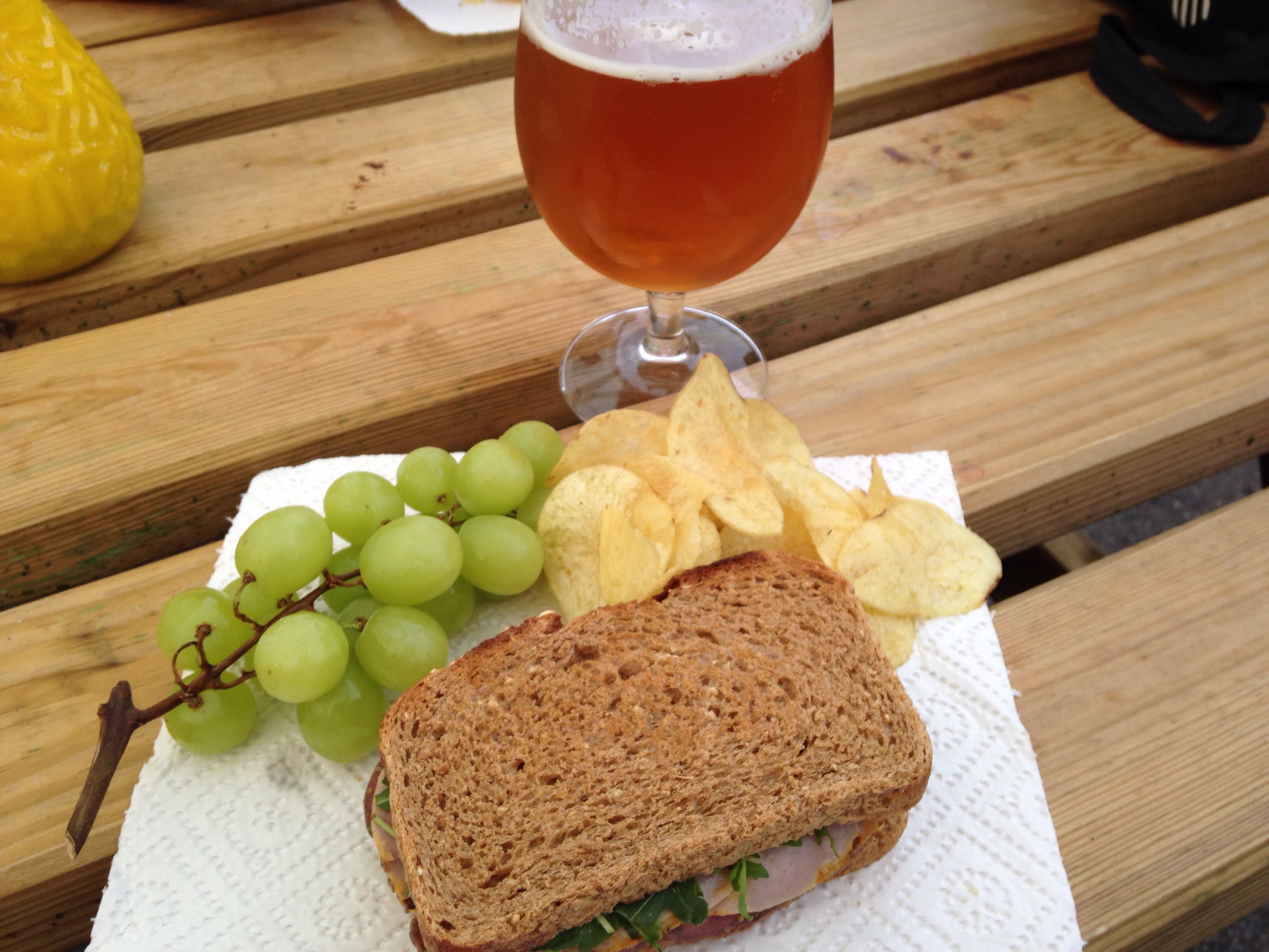 We stopped at a cute cafe in the park and had beers with our picnic lunch. We had roast beef, ham, cheese, arugula, onion, mayo and mustard sandwiches with chips and grapes. We brought chocolate but I don’t think anyone ate it. The beer was excellent! The best I’ve had all summer. It was similar to Sierra Navada Pale Ale- one of my all-time faves!