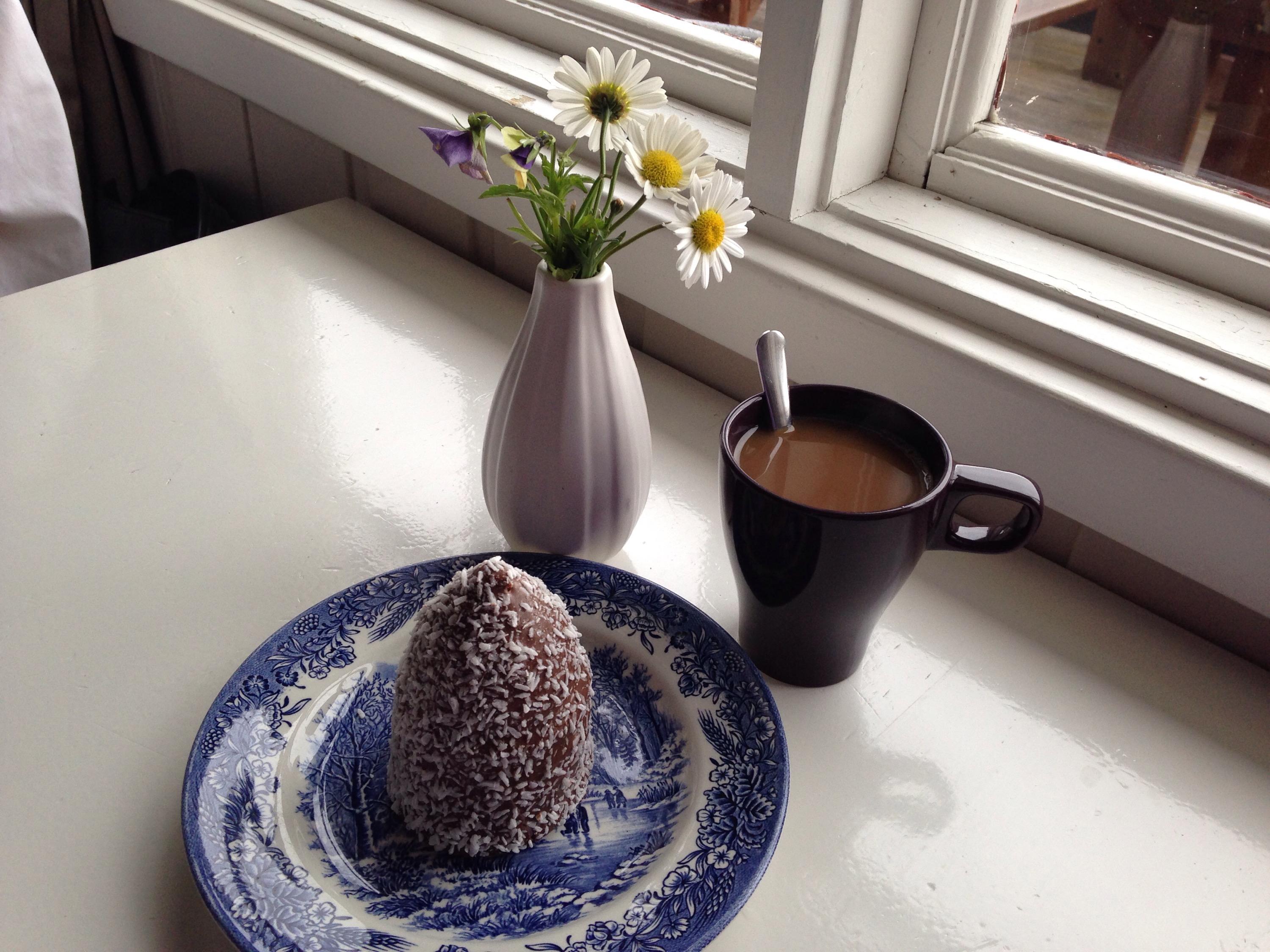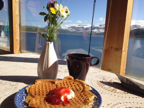 We stopped high on the mountains for a treat. We tried the Norwegian speciality Koksbolle- homemade marshmallow covered in chocolate and coconut. We actually really liked it. I’m not usually a marshmallow fan, but the soft homemade variety are superior. It was sweet and full of vanilla. The chocolate and crunchy coconut made it even better!