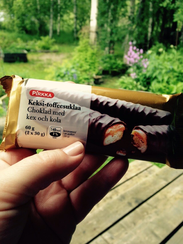 It’s a good thing they have rubber boots, because it’s sloshy out there! It quit raining and the sun came out, so we went for a hike. What a beautiful place! When we got in, I “needed” a little something. I reached for a Keksi-toffeesuklaa, of course😌 I would call it a Twix, but they call it a Keksi-toffeesuklaa. We can agree to disagree.