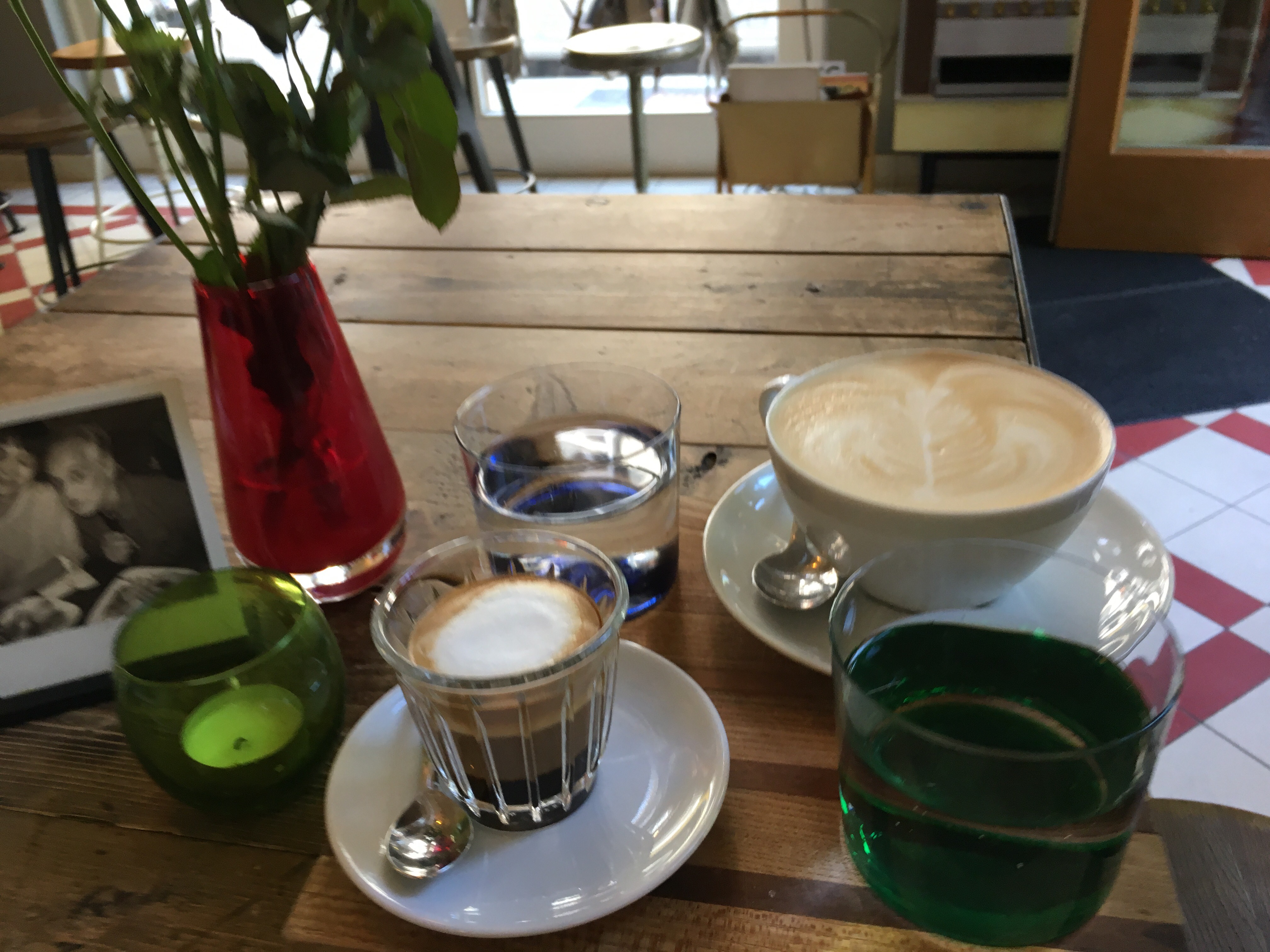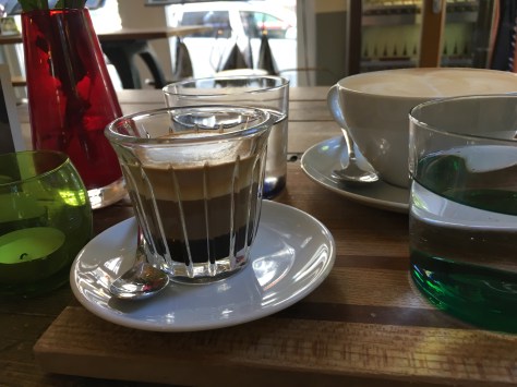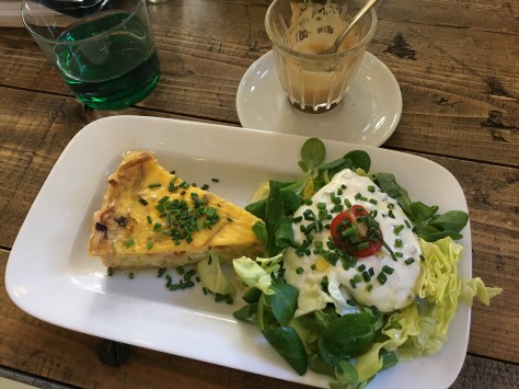 ​Adorable! Amazing coffee!Delicious and gorgeous espresso macchiato Ham, leek, and cheese quiche with fresh salad. It was really good! The dressing was garlicky-herbed yogurt. Mmmm!