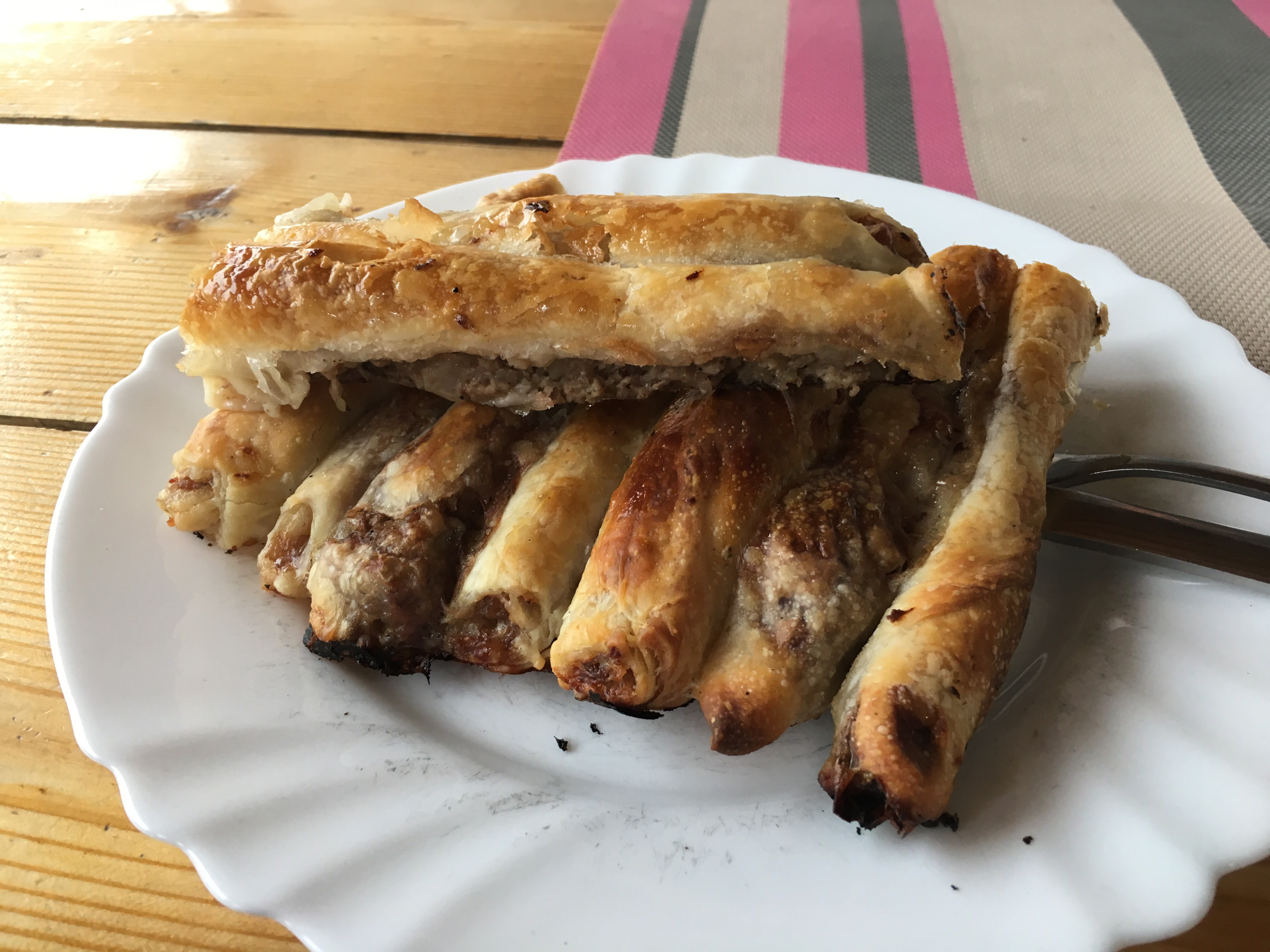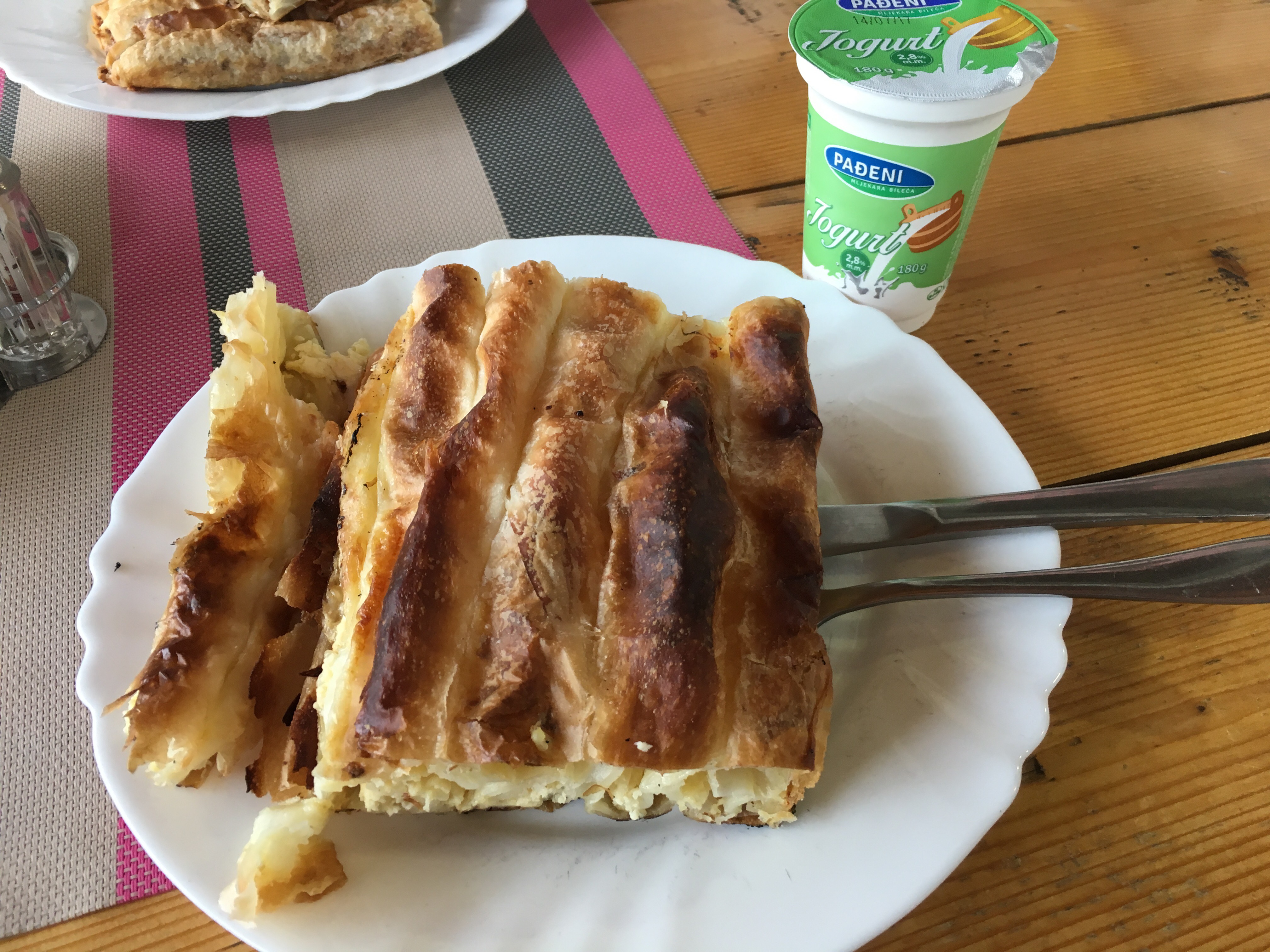 Jovo told us his mom (who we get to meet later today) used to make Pita every Saturday when he was a kid. He loved it and told us we had to try it while we’re here. He took us to a shop that he really likes and we can see why! The Pita – thin layers of pastry rolled around fillings( pumpkin, beef, cheese, or spinach and cheese) then coiled and baked until crispy- was amazing! We especially loved the Burek or meat filled variety paired with the tart yogurt drink.