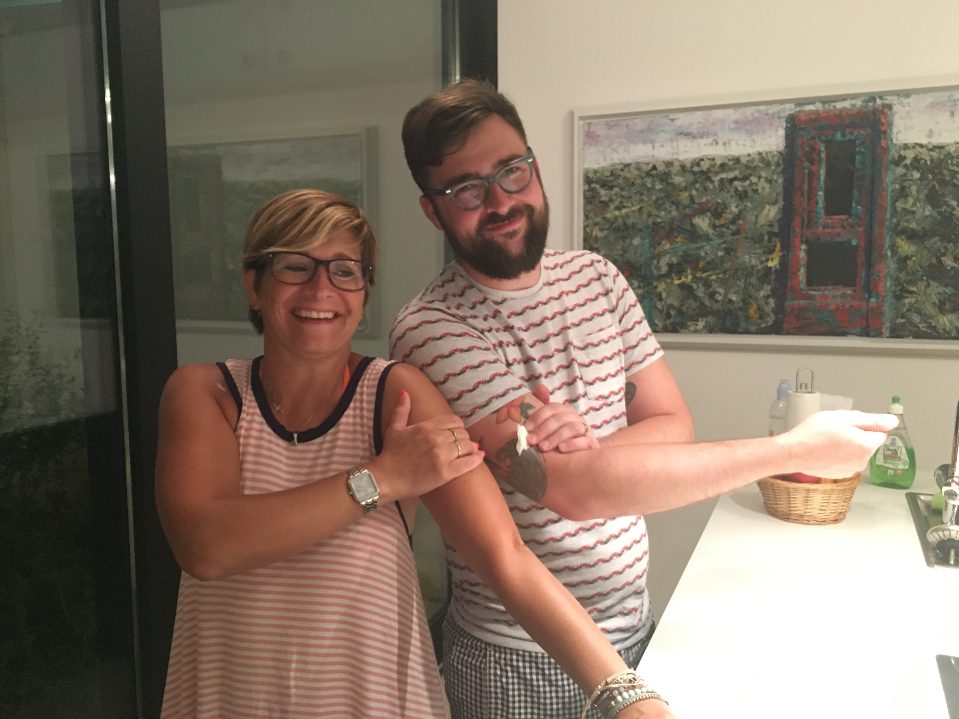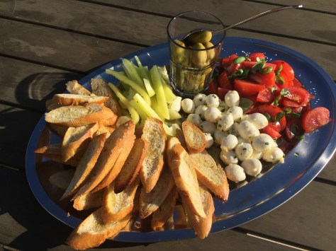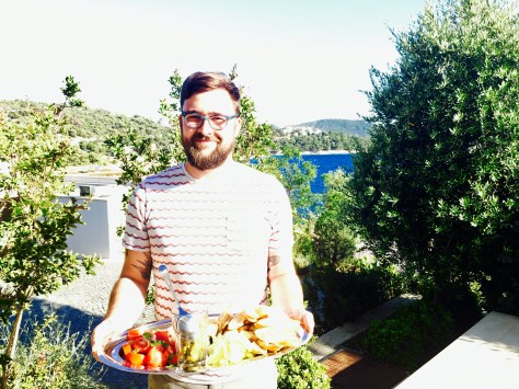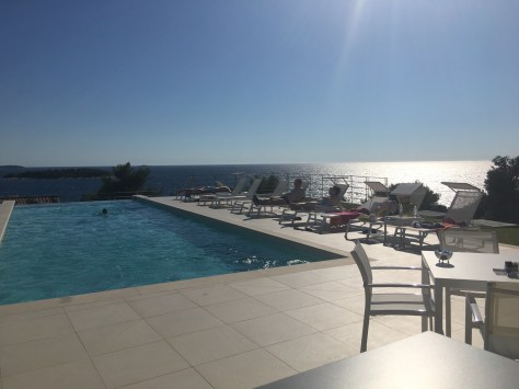 โ€‹Too beautiful!Cute cabana boy ๐Ÿ˜Olives, crustini, marinated mozzarella, tomatoes and basil, and peppers. Our villa for the next few nights ๐Ÿ˜ƒit’s a good life ๐Ÿ˜ŽI made an antipasto platter, salad, and zucchini pasta carbonara. Not bad๐Ÿ˜œDawn and Adam celebrating Independence Day with temporary tattoos ๐Ÿ˜‚Almost forgot a picture- pasta carbonara. Adam made dessert- watermelon with lemon zest, white wine, and salt. It was really delicious! The perfect light finish to our rich meal. Sunset over the Adriatic ๐Ÿ˜