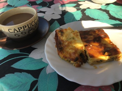 I could handle the instant coffee. The egg dish, on the other hand, was like chalky bits of sponge with canned mushrooms and slimy zucchini with a rubber glove on top… was that a bit of cigarette ash? Maybe. Thank goodness for that view… the eggs looked so good flying into the canyon 😜