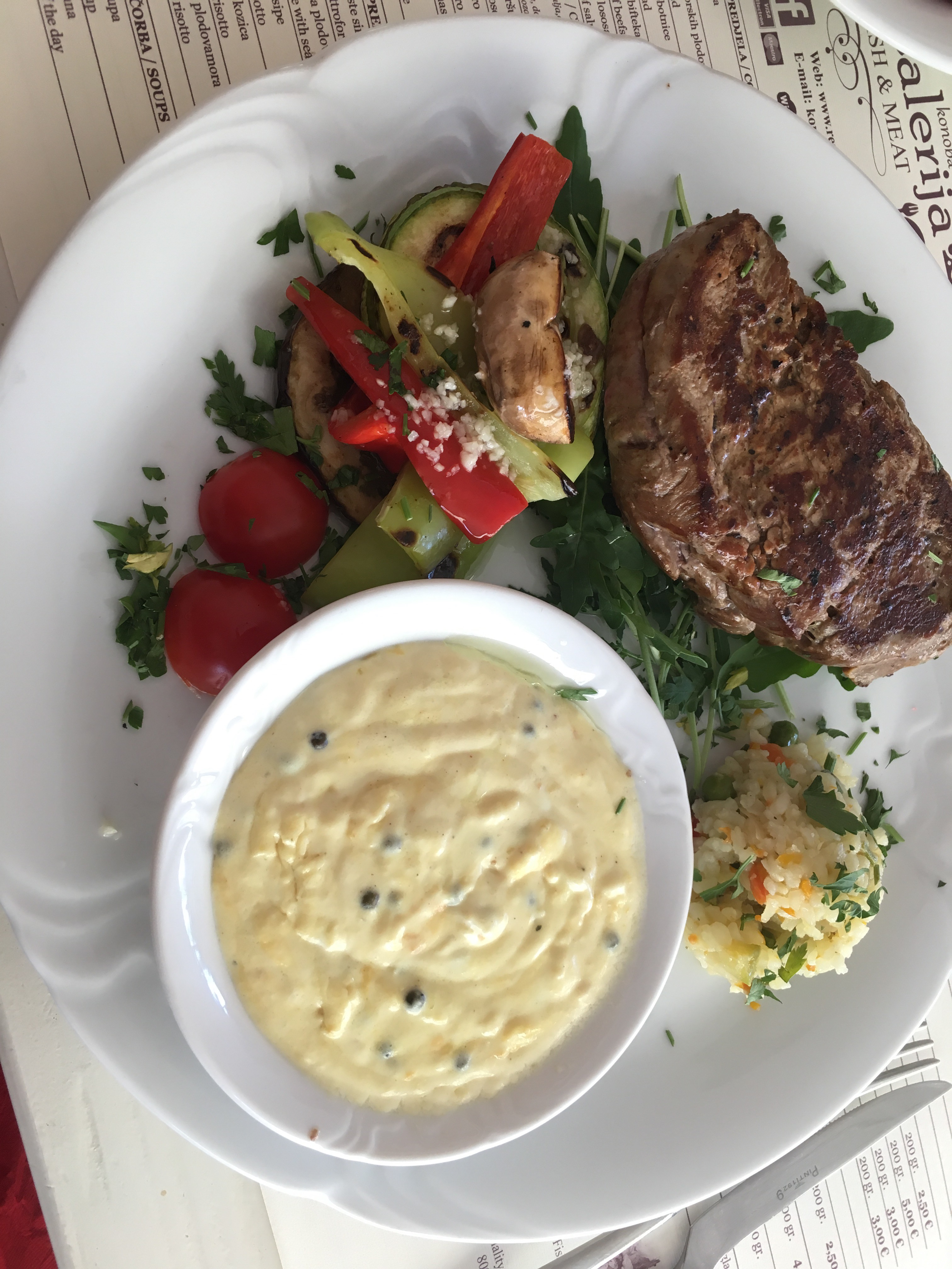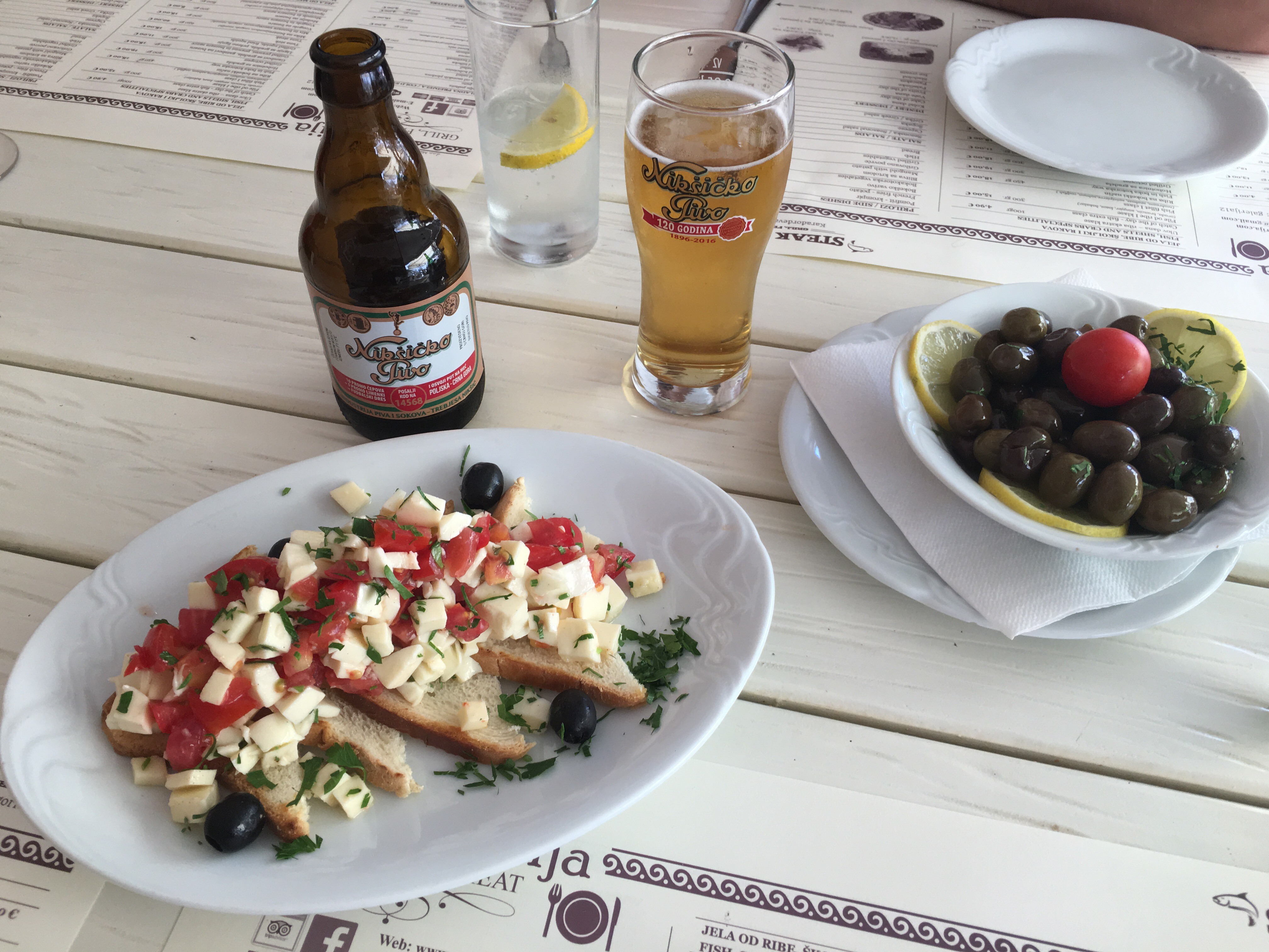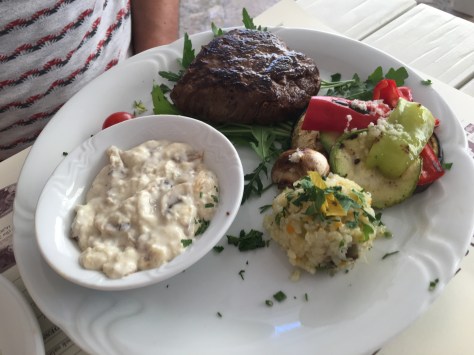 Uncategorized Lunch in Kotor July 12, 2017 Charity Prawitz Leave a comment Local beer, bruschetta, and local olives All were very good! I had steak with pepper sauce. The steak was great. The sauce was not. I really like the grilled veggies too. Adam had the steak with mushroom sauce. He liked it all! Share this: Click to share on Facebook (Opens in new window) Facebook Click to share on X (Opens in new window) X Like Loading... Related