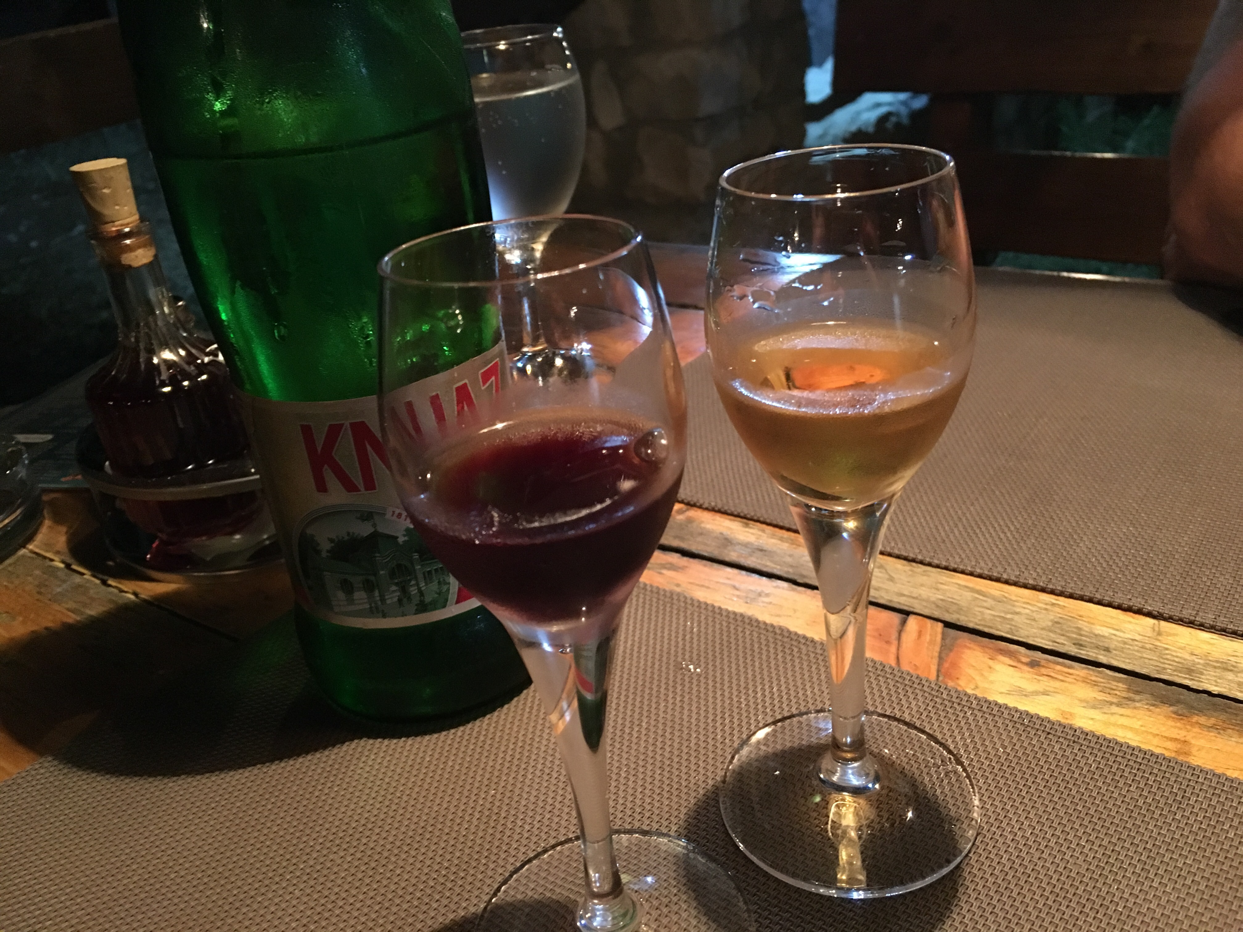 Homemade liquor, a Bosnian tradition, rose and blackberry. Both were excellent!