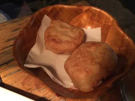 Fritters- like savory doughnuts. Very good, but very heavy.