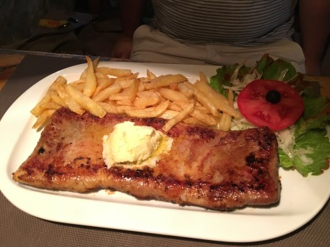 Adam had this ridiculous stuffed steak- Gorgonzola and ham inside thin steak. It wasn’t his favorite.